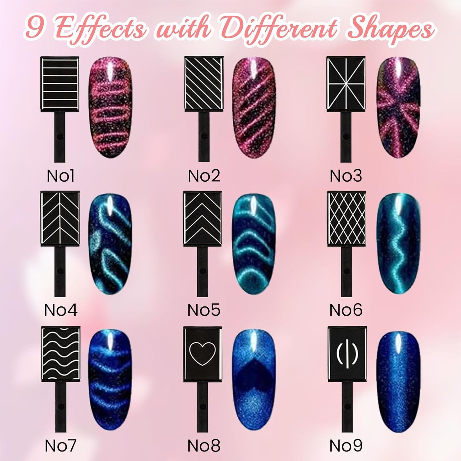 【Strong Magnetic Effect,Unlimited Creativity】The strong magnetic properties of the Nail Art Pen Tool allow you to accurately and easily create a variety of amazing cat eye effects on your nails during use. Different shapes and angles have completely different suction effects on the tool, giving you a wide range of creative space