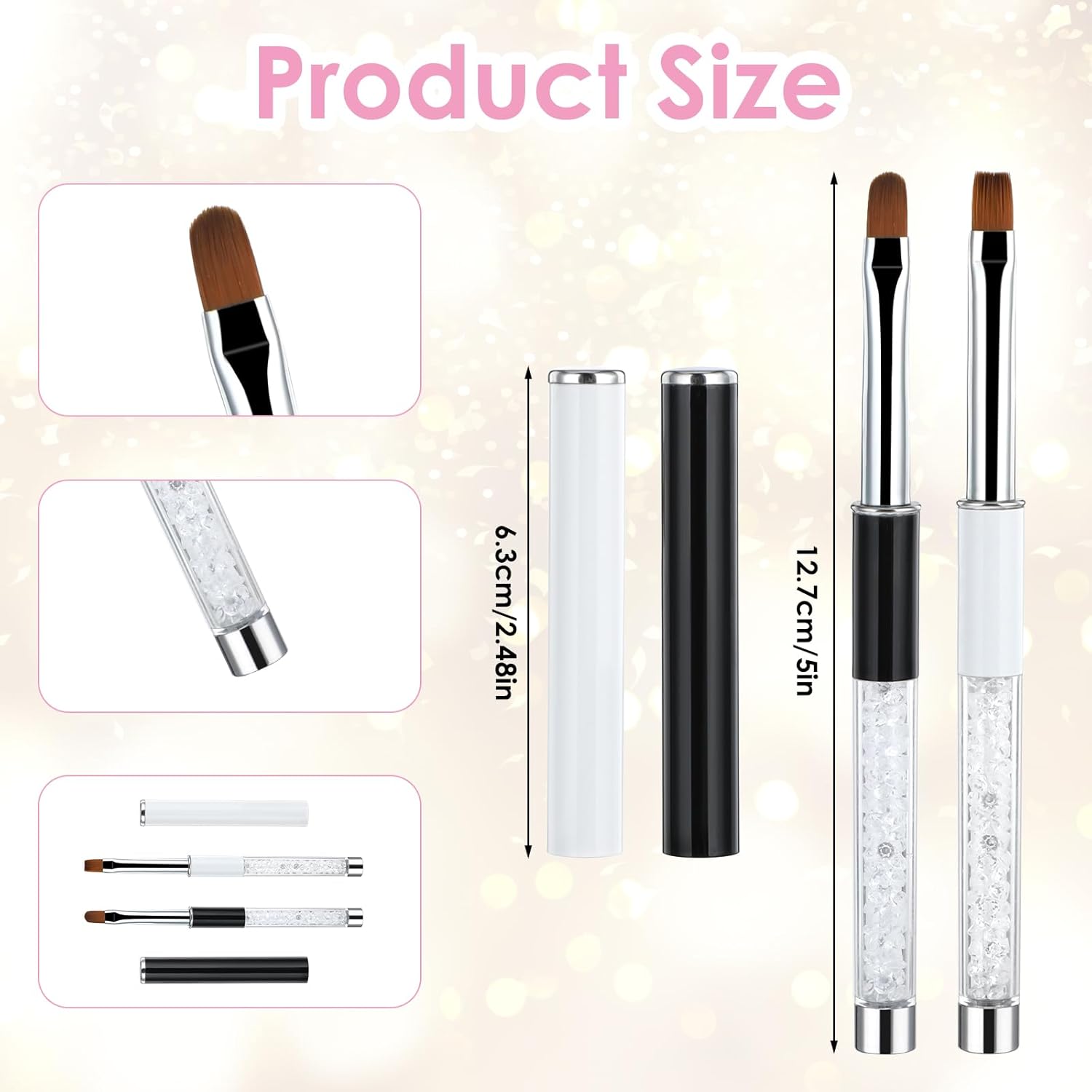 Package List: You will receive 2 pieces nail paint brushes with different shaped heads: flat and oval. This nail brush set is perfect for your nail art design, offering versatility and precision for beginners and professionals alike.