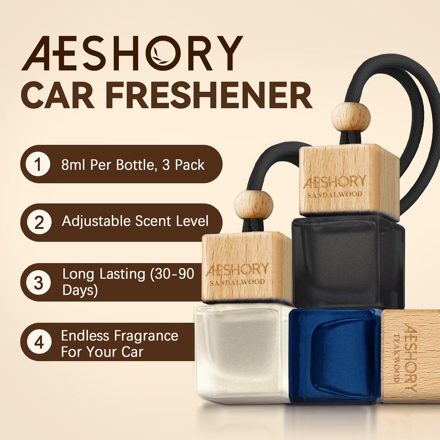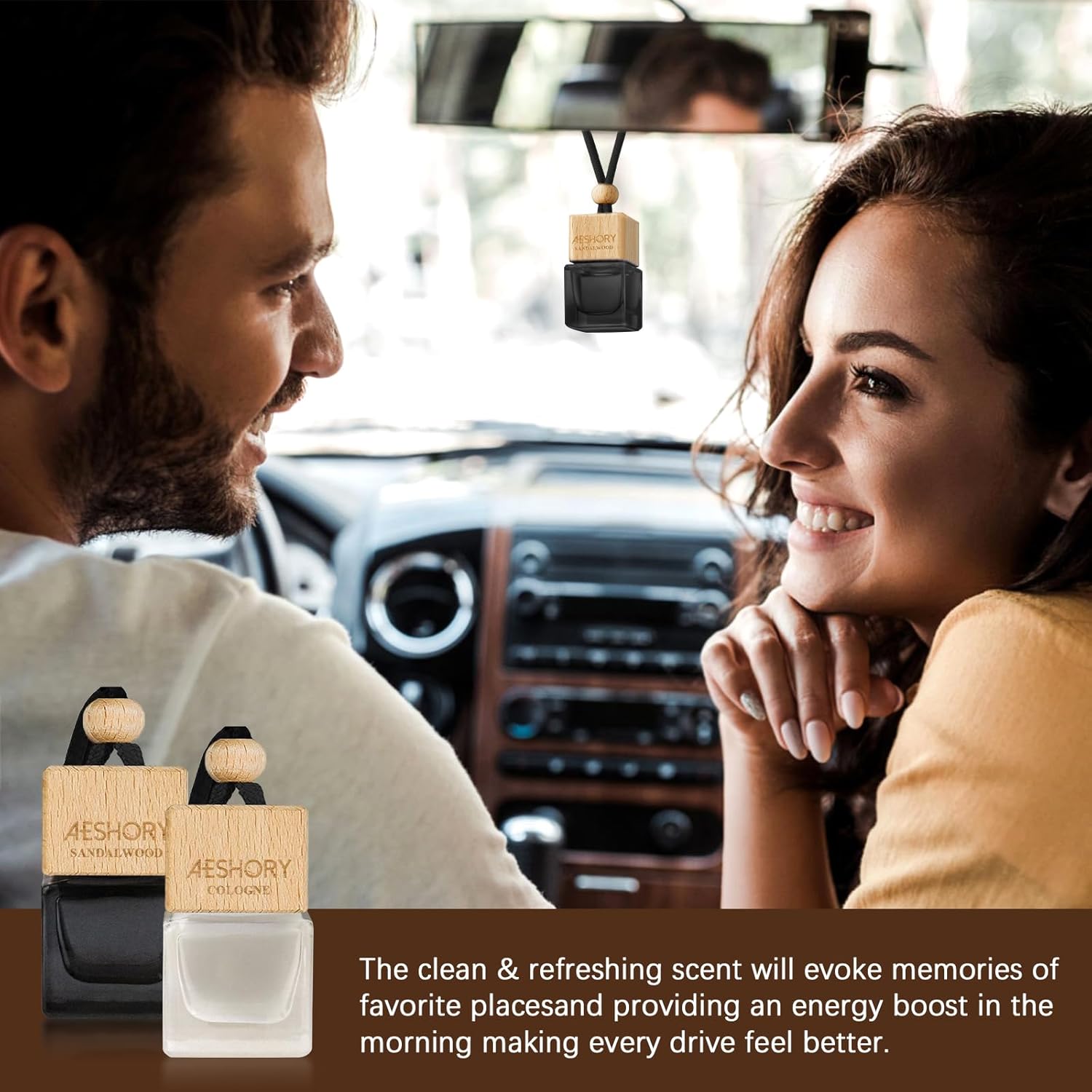 AESHORY Car Air Freshener for Men | 3 X 8ML Hung Perfume Diffuser for Car | Hanging Essential Oil Air Fresheners with Ventilation Clip – Cologne, Sandalwood, Teak