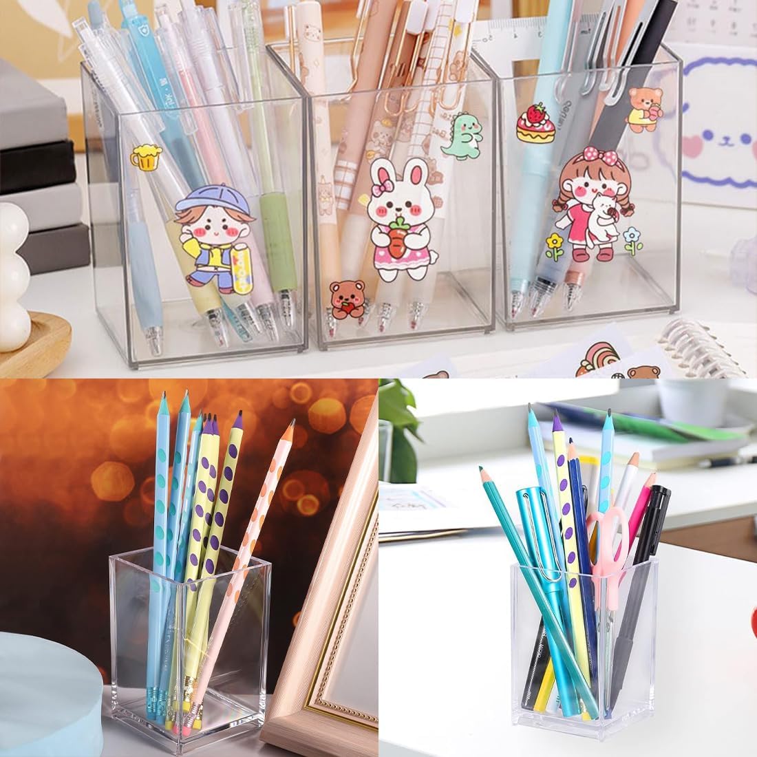 Practical: the set of 2 acrylic storage set is perfect for schools, offices and households. It keeps your desk or makeup organized, clean and tidy.