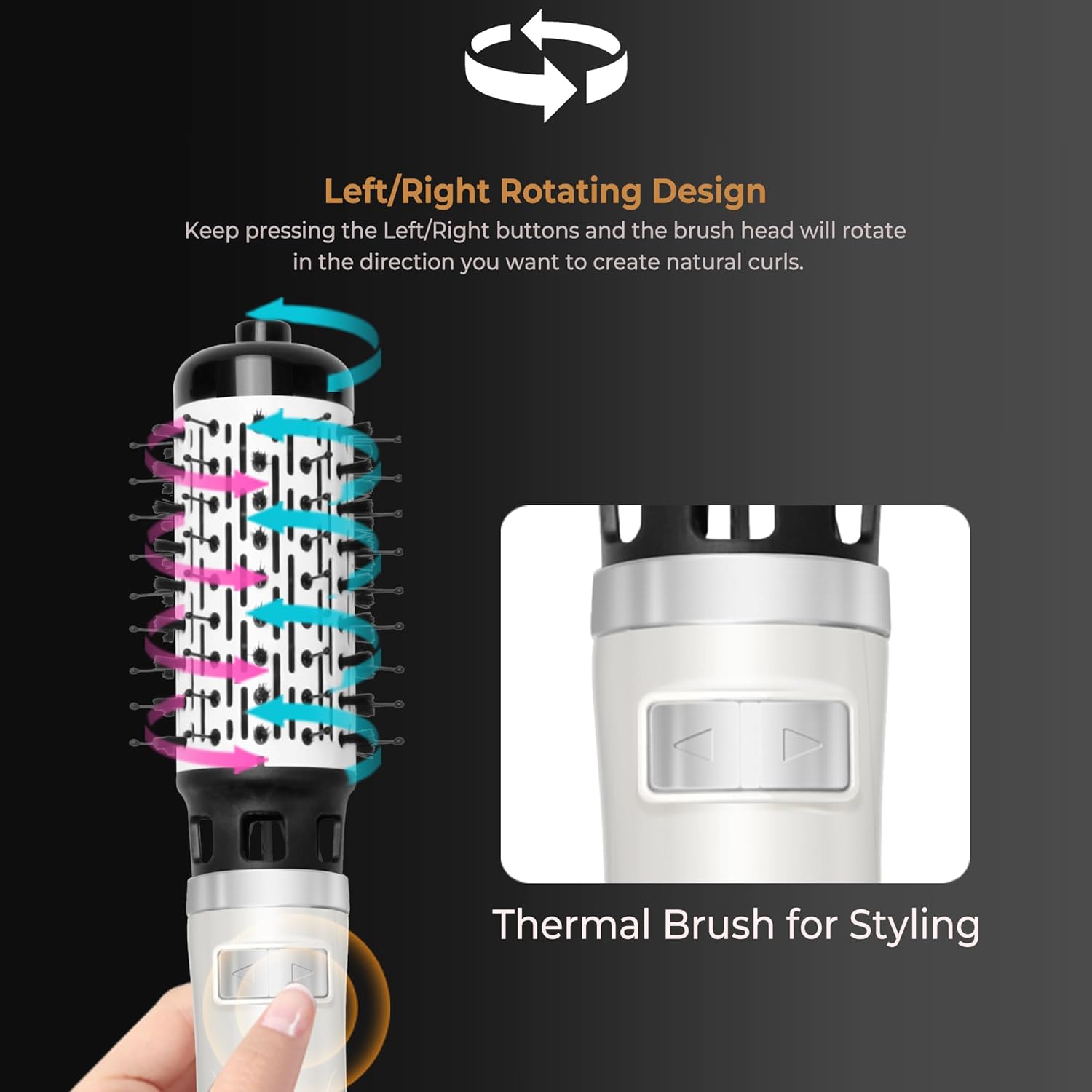 Automatic curling brush: The curling brush can be rotated by operating it by long pressing the left/right buttons, which saves time and protects against burns by quickly creating curly styles. The ergonomic and lightweight handle reduces hand fatigue during styling.