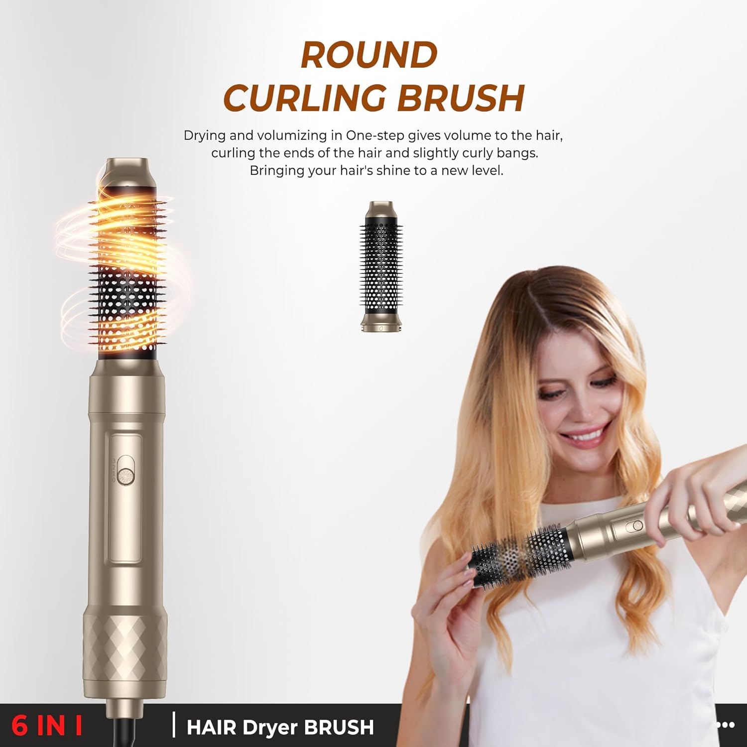 6-in-1 hair dryer: hair brush set with 6 interchangeable heating brush accessories that make it easier to blow-dry, smoothe, curl, fluffy and massage the scalp. This air styler is ideal for creating different hairstyles for different hair lengths. The exquisite packaging allows you to use it as a Christmas gift for your friends, family or other people you love