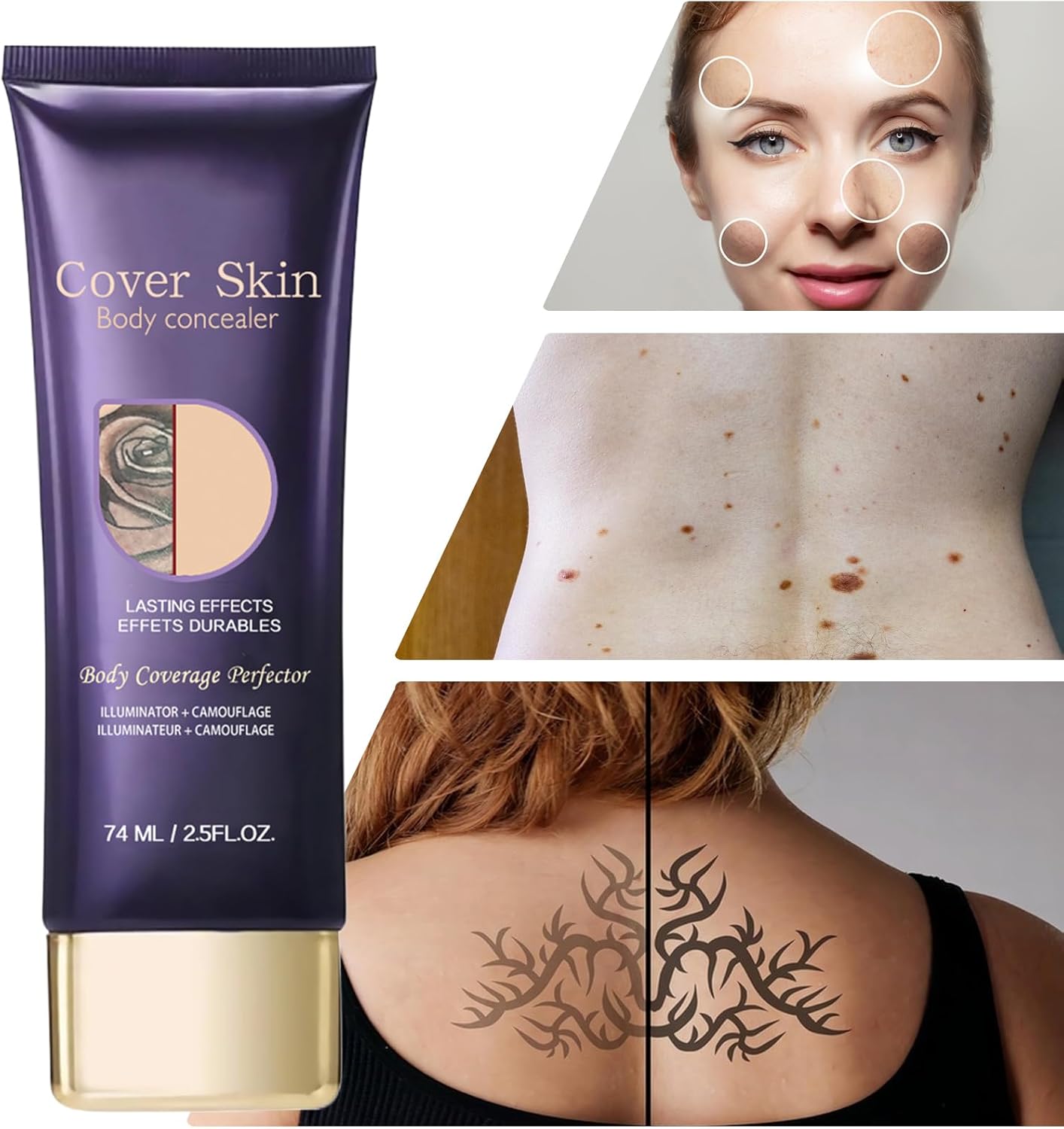 Deze all-over concealer past naadloos op de huid en helpt ongelijke tonus, vlekken of aderen te bedekken met een voor benen, armen of andere lichaamsdelen.