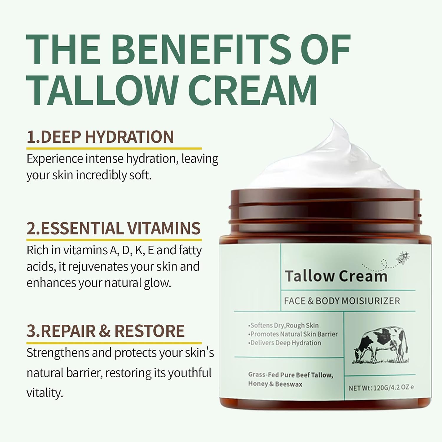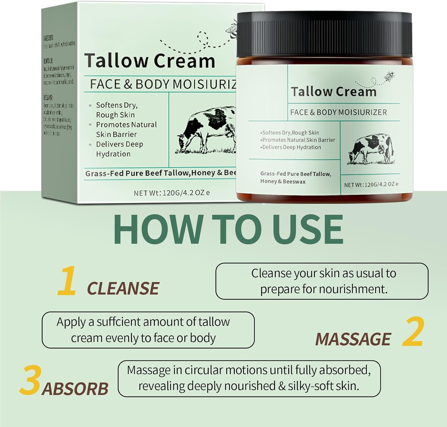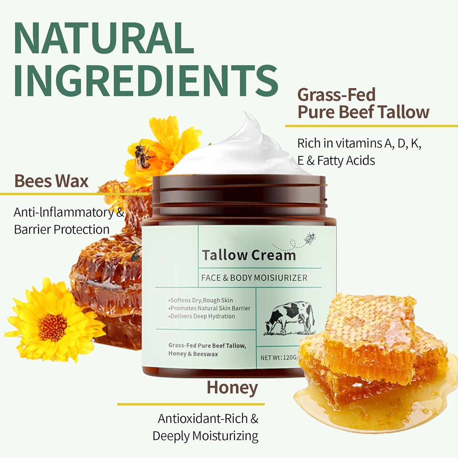 [Soft and Non-Irritant]: The organic tallow cream moisturizer is made with the pure formula: grass fat butter + honey + beeswax, which is free of chemicals, soft and restores the skin, suitable for all skin types, including sensitive skin!