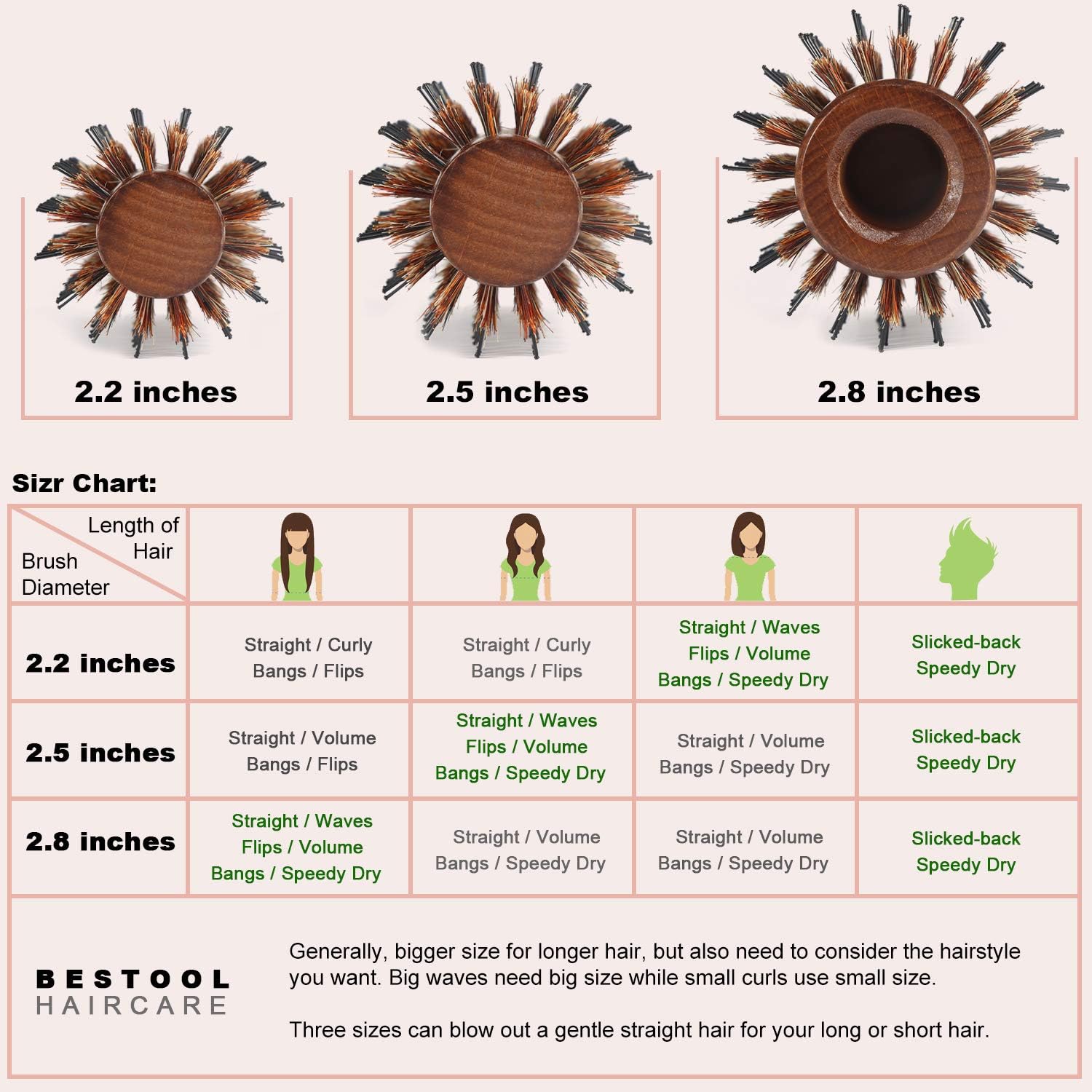 BESTOOL Round Brush for Blow Drying, Bristle, Round Hair Brush with Wooden Barrel, Large Round Styling Brush for Women and Men, Straightening, Curling, Add Shine or Volume (2.8 inch)