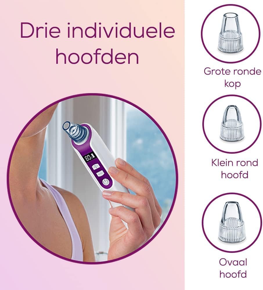 Modern vacuum technology: The effective pore cleanser from Beurer provides deep cleansing of the pores and frees your facial skin from pimples, blackheads, dander and impurities