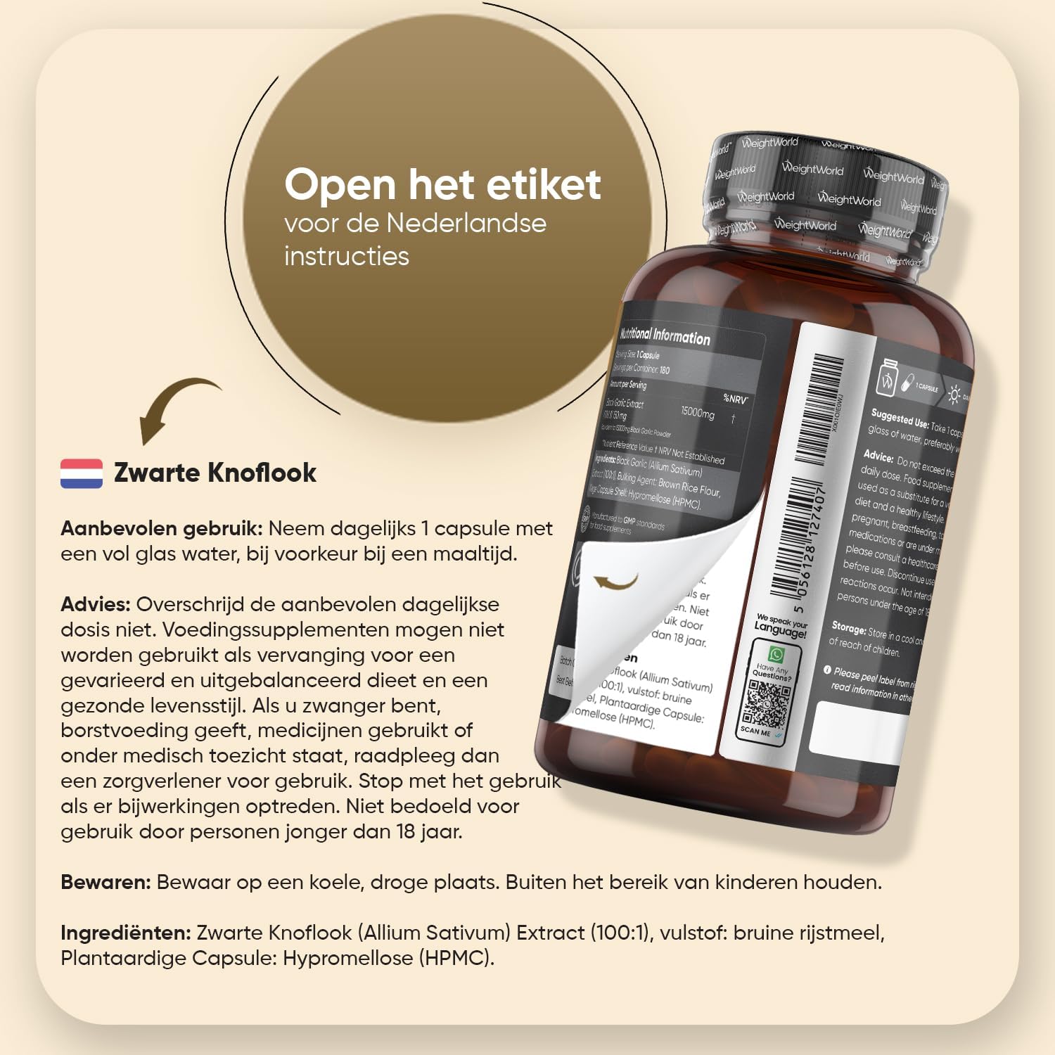 100:1 extract – Each capsule contains a 100:1 black garlic extract, which equals 15,000mg of black garlic. This concentrated extract provides an ideal composition in compact capsule form.