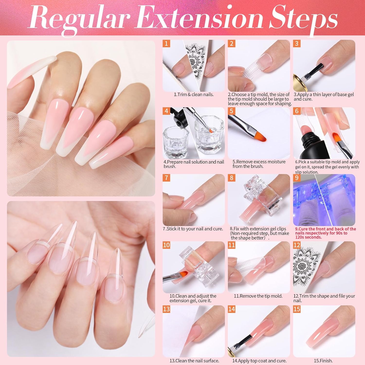 LONG LASTING EFFECT: The poly nail extension gel is easy to knead and stays on for about a month or more (with filing, buffering and cleaning). This allows you to easily knead the poly nail gel and apply smoothly in two layers for better adhesion.
