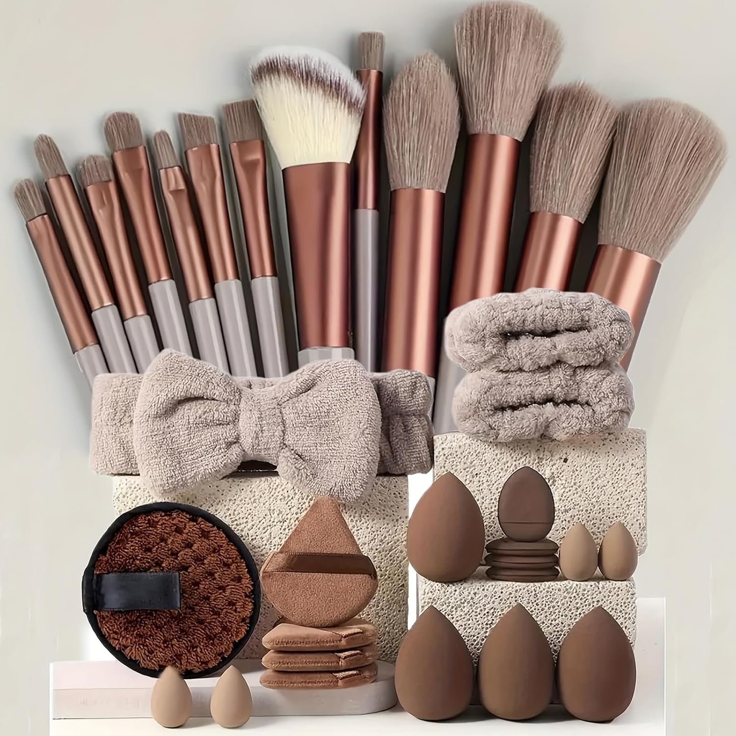 This 33-piece kit combines brushes and sponges to provide a comprehensive solution for all beauty needs, ensuring a smooth transition from cleansing to final touches