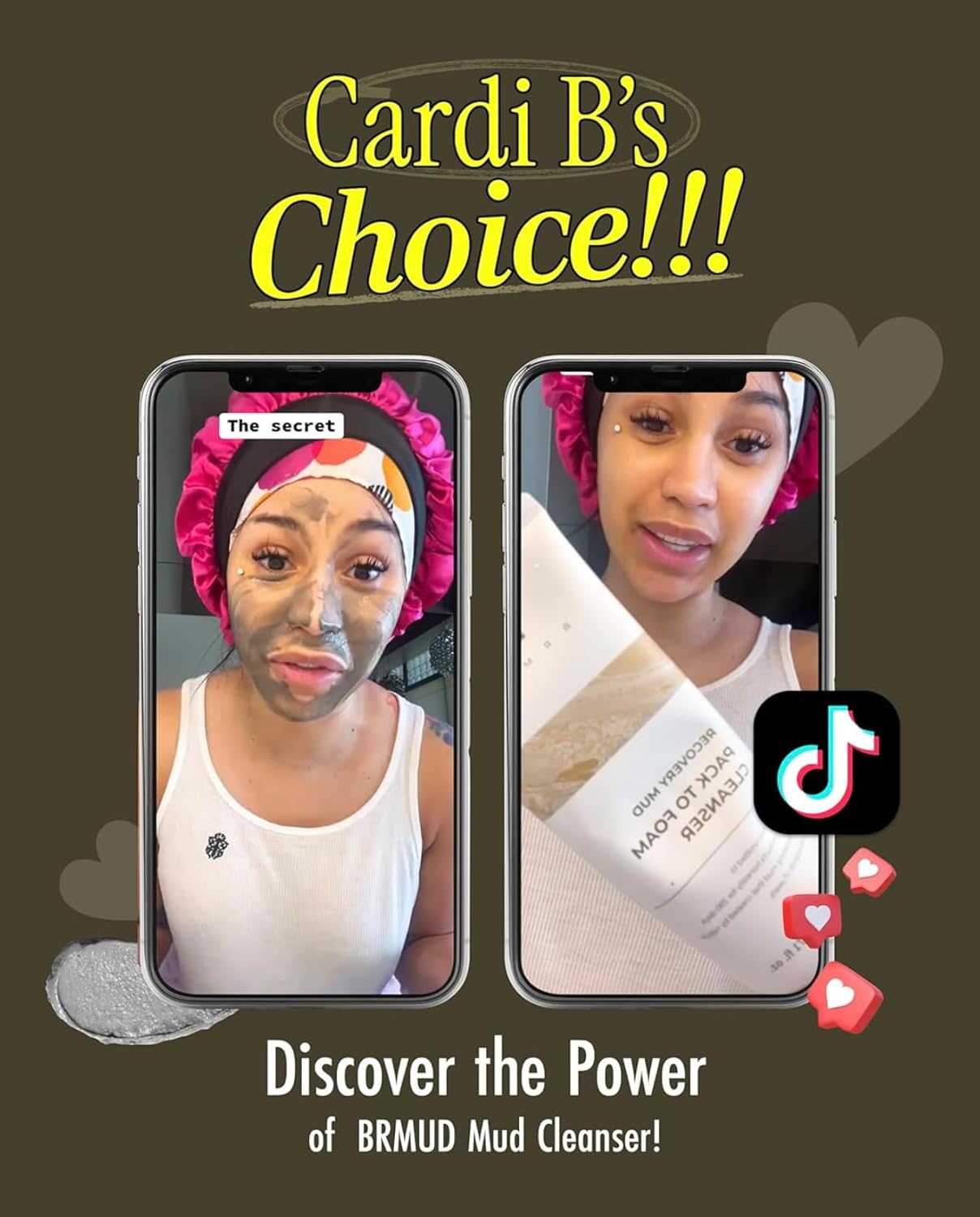 Cardi B Cleanser Recovery Mud Pack to Foam Facial Cleanser | 2-in-1 Moisturizing Korean Foaming Cleanser for Pore Reduction, Sebum Control and Makeup Cleansing | Clay Mask