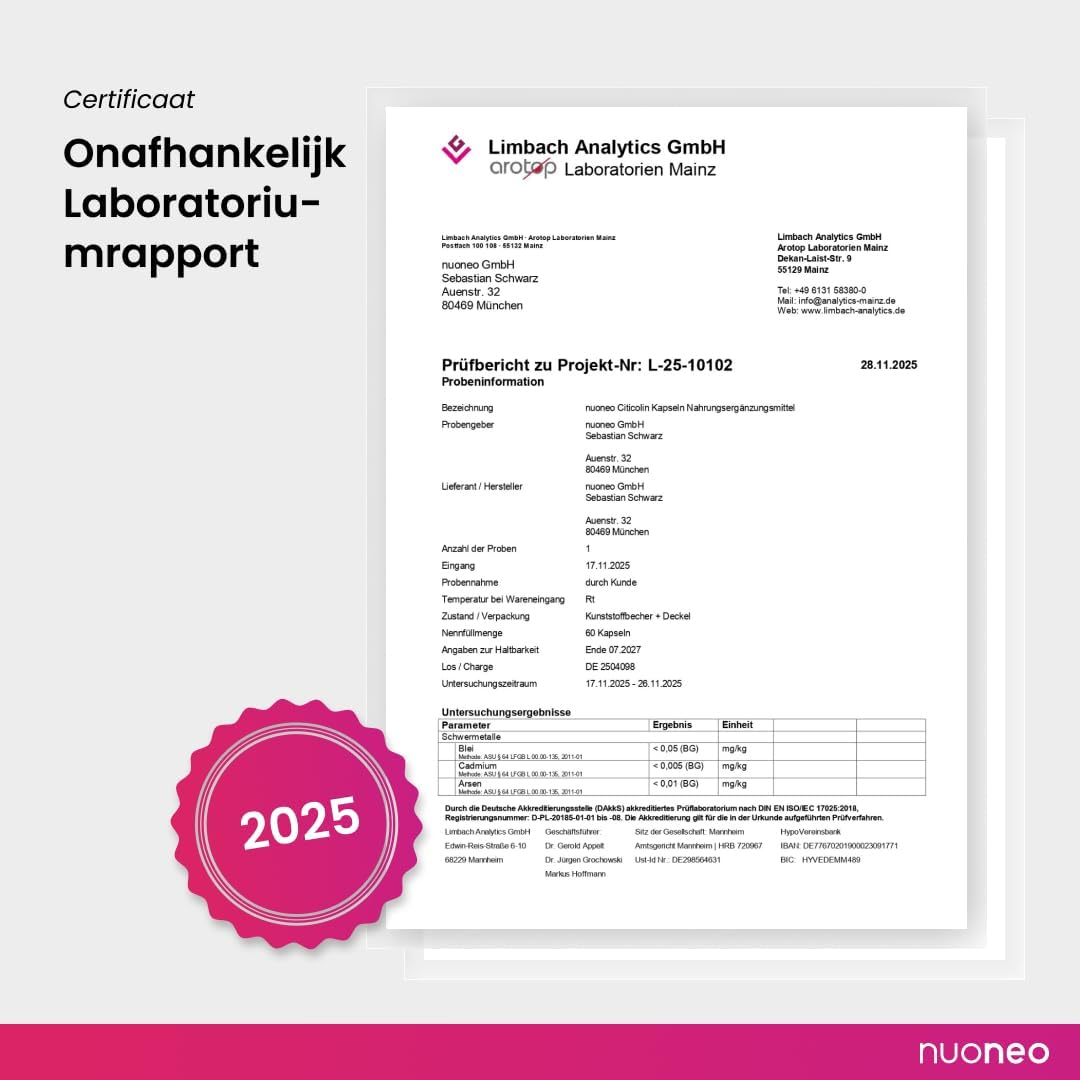 Independent laboratory tests: the food supplement is independently tested for quality by accredited laboratories – the highest quality standards guaranteed.