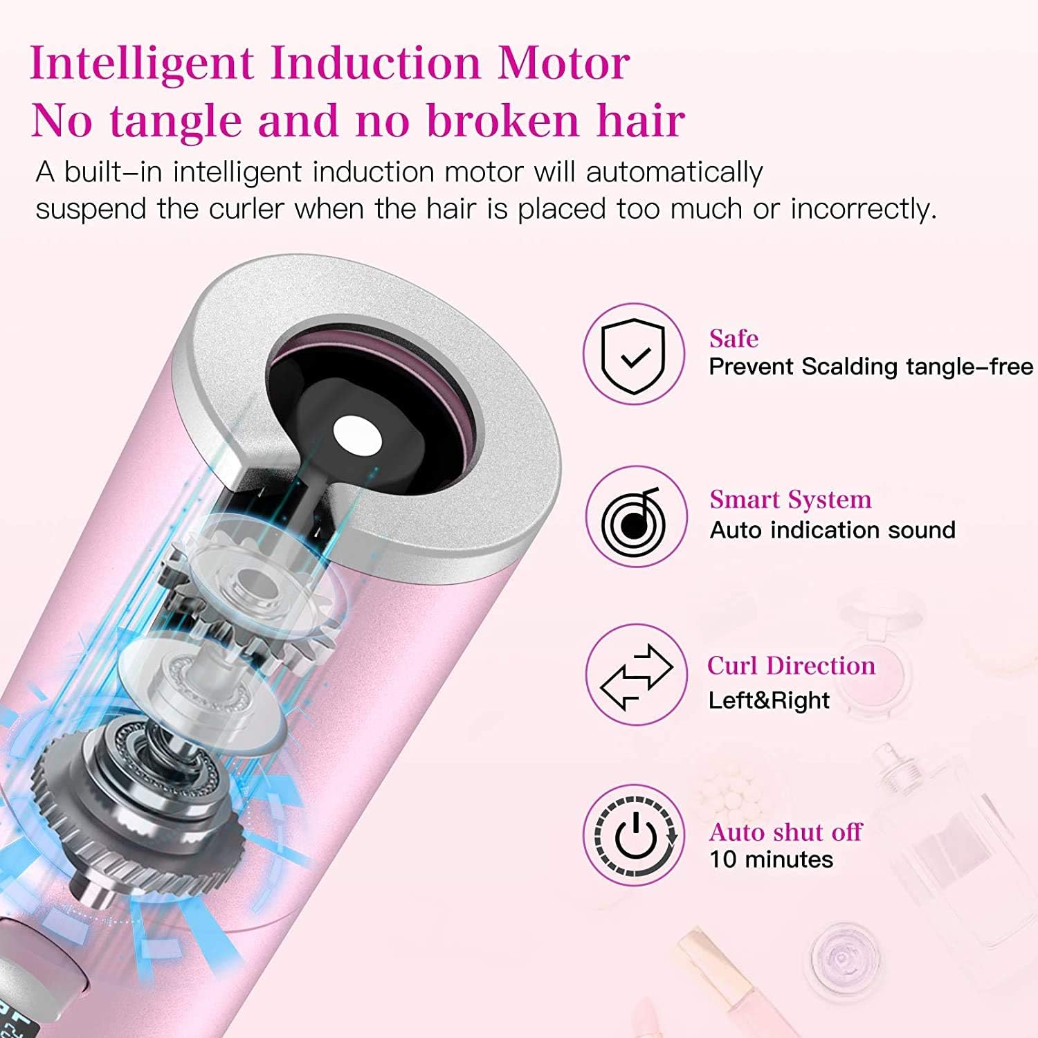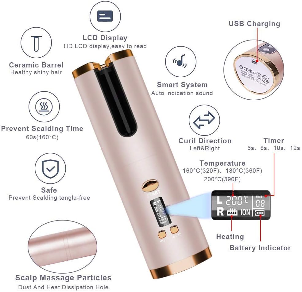 [Cordless Automatic Hair Curler] The latest Cordless Hair Curler Bid Farewell to the messy tangled cable design. There are no cable restrictions and you can curl your hair anywhere. No skill is required, you can learn to use it in 1 minute, it can replace traditional curling iron or curly pliers