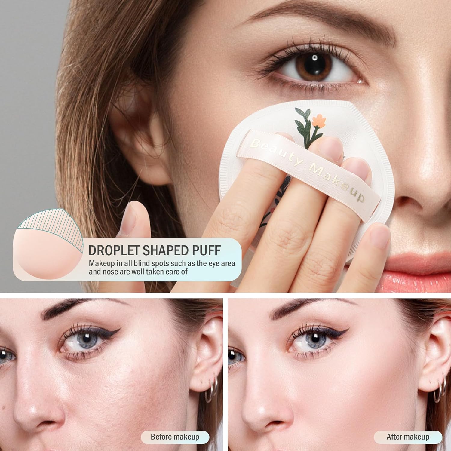 THE PERFECT MIX OF PRECISION AND EASE – With a wide back ribbon and precise design, CORNERIA Large Powder Puff allows you to effortlessly apply and blend your favorite makeup products. With unique water drop shapes, every corner of your face can be easily reached.