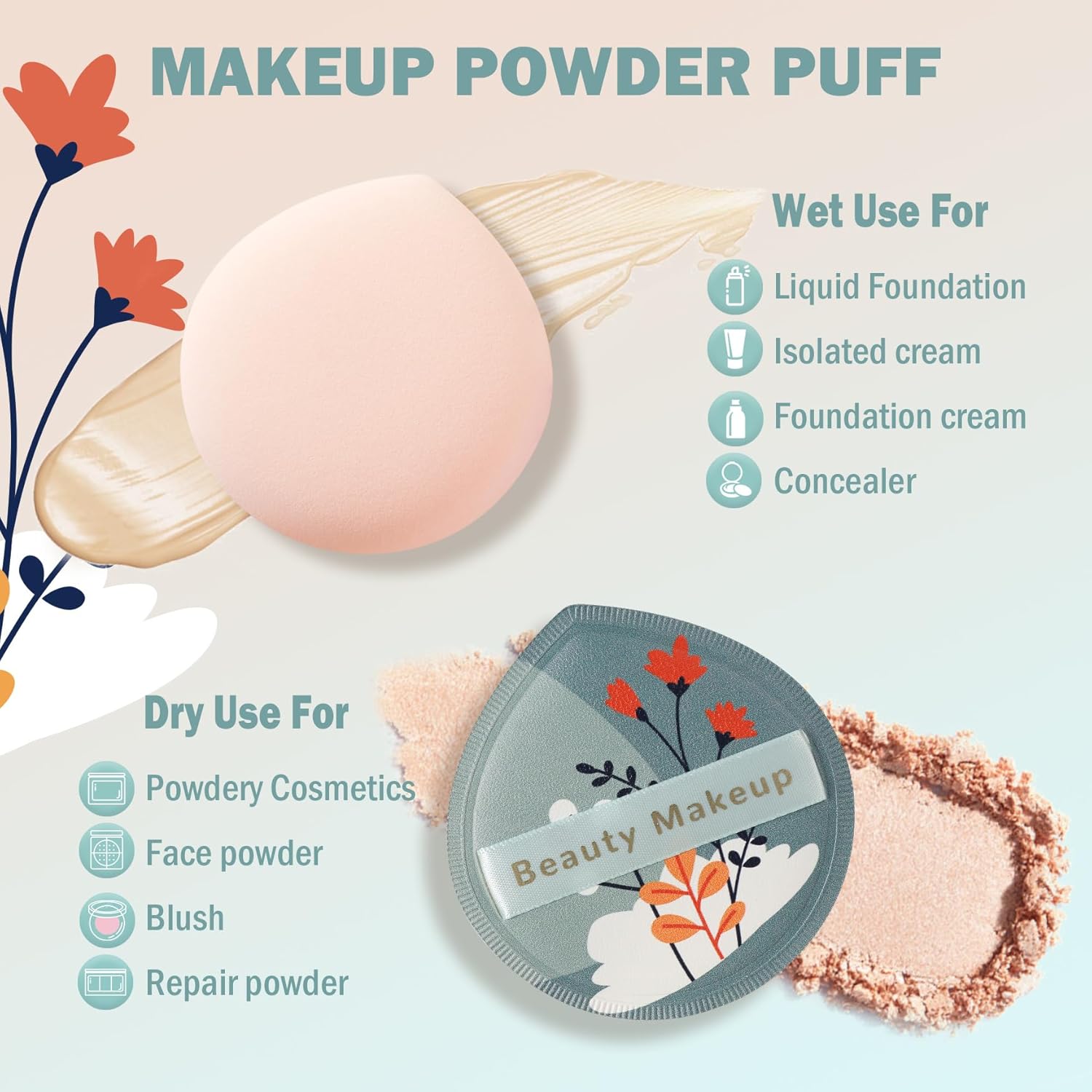 EFFORTLESS MAKEUP ON – This is your perfect choice for flawless makeup! Our large makeup puff has a delicate, super soft and fine high-density surface to ensure a perfect finish.