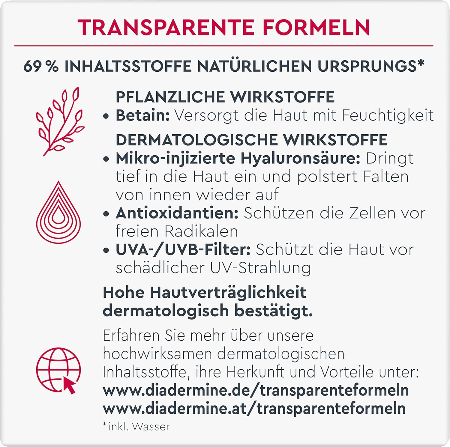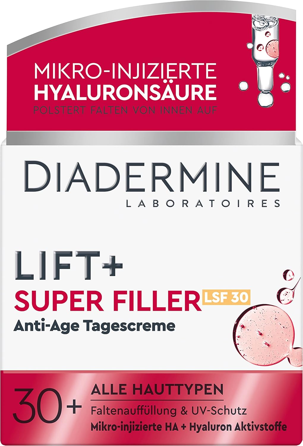 DIADERMINE Lift+ Super Filler Anti-Age dagcrème met SPF 30 met micro-geïnjecteerd hyaluronzuur en hyaluronactieve stoffen beschermt tegen uv-/IR-straling en milieu-invloeden