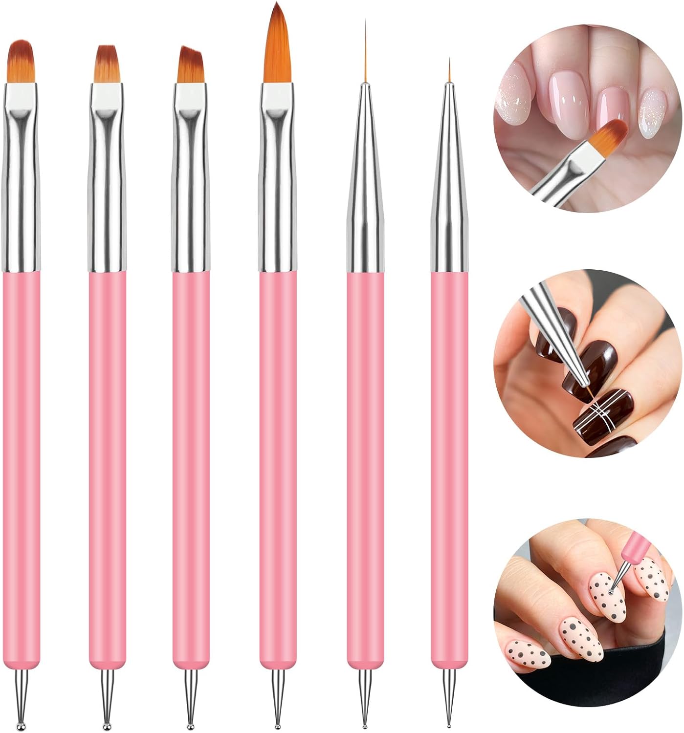 Doubel Ended Nail Art Brushes, 6PCS Nail Design Brushes, Point Drill Drawing Painting Tools Set, Nail Art Brush, Drill-Drawing Liner Nails Brush Pen for DIY Nail Art Designs