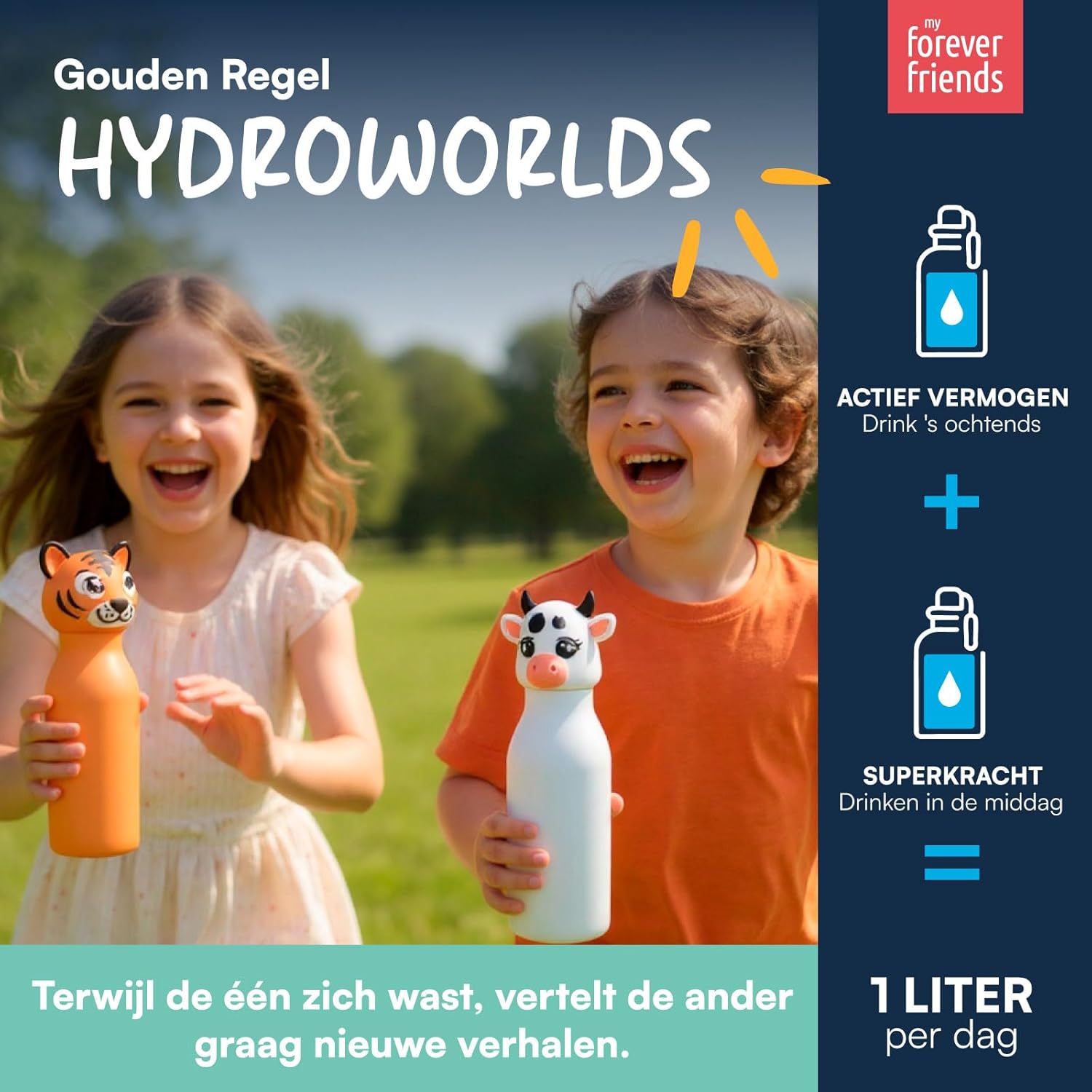 With 2 water bottles, your child will experience double adventures, he or she alternates different stories​and he or she easily meets his or her daily water needs. In addition, one water bottle, while being washed, is always ready for a new adventure. By collecting all the water bottles, your child comes up with more and more stories and develops a healthy drinking habit