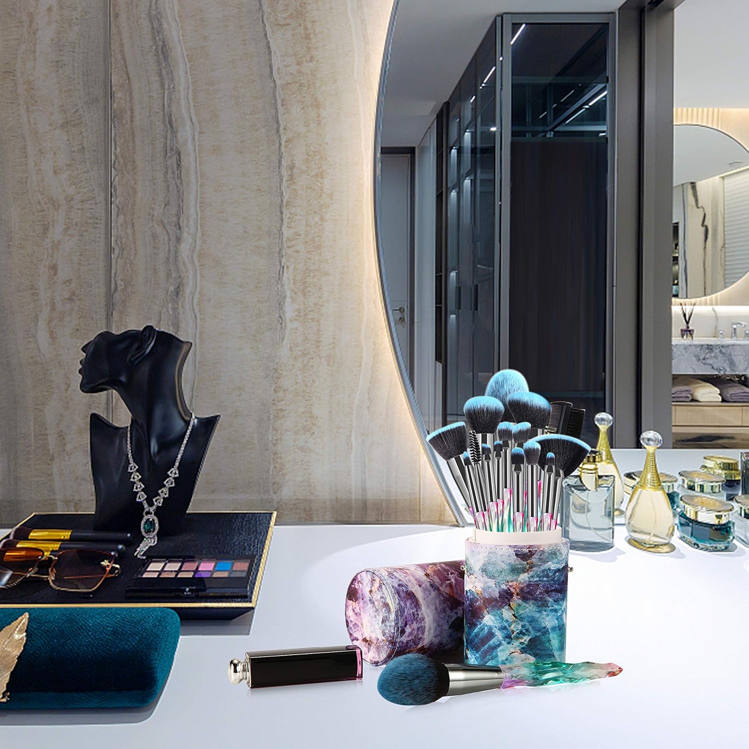 Uniek oppervlak met kristalverloop: het handvat van de make-upborstels met transparant contrastkleurig ontwerp ziet eruit als een juweeltje, het zal schitteren onder zonlicht of fel licht; je voelt je erg stevig als je deze onregelmatige handgrepen vasthoudt.