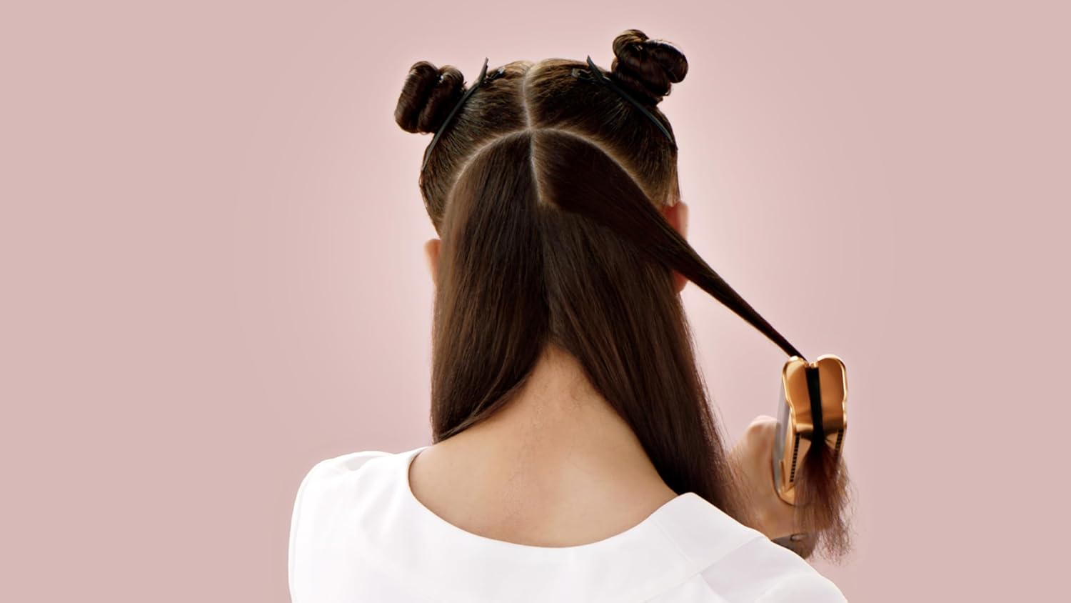 Werk je haar bij of verfris je model om een natuurlijk steil model te creëren met minder pluis en opspringende haren², voor een gladde, glanzende afwerking met volume.