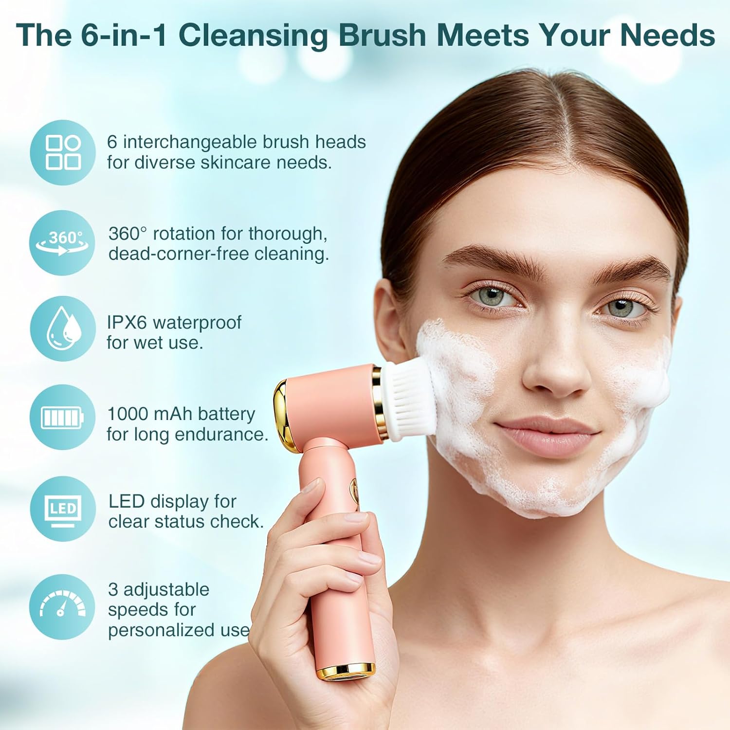 Experience the next level of facial cleansing and skin care with our advanced 6-in-1 electronic face brush – your versatile beauty companion for a radiant complexion.