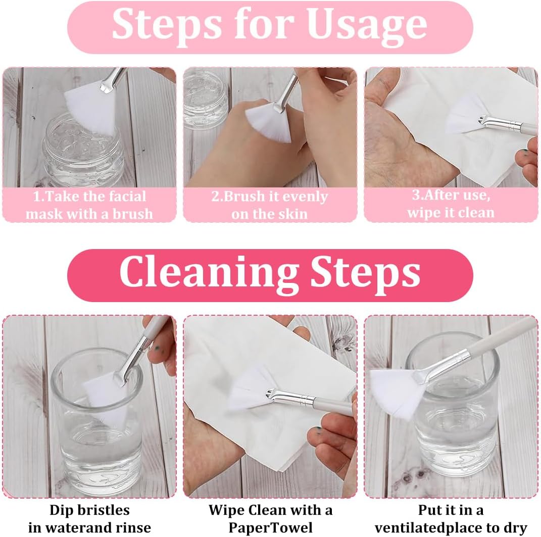 High-quality material: these fan-shaped face mask brushes are made of high-quality, soft and safe bristles that will not harm or irritate the skin. The smooth handle sits well in the hand and can be easily cleaned with water. Thanks to their robust construction, these brushes can be used for a long time and without any problems.