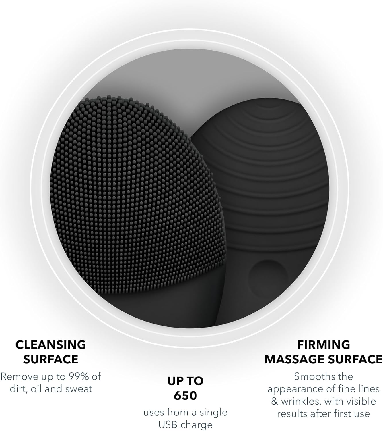 Zachte, ultrahygiënische gezichtsreiniging en verstevigende massageborstels van siliconen verwijderen direct aantoonbaar 99% onzuiverheden.
