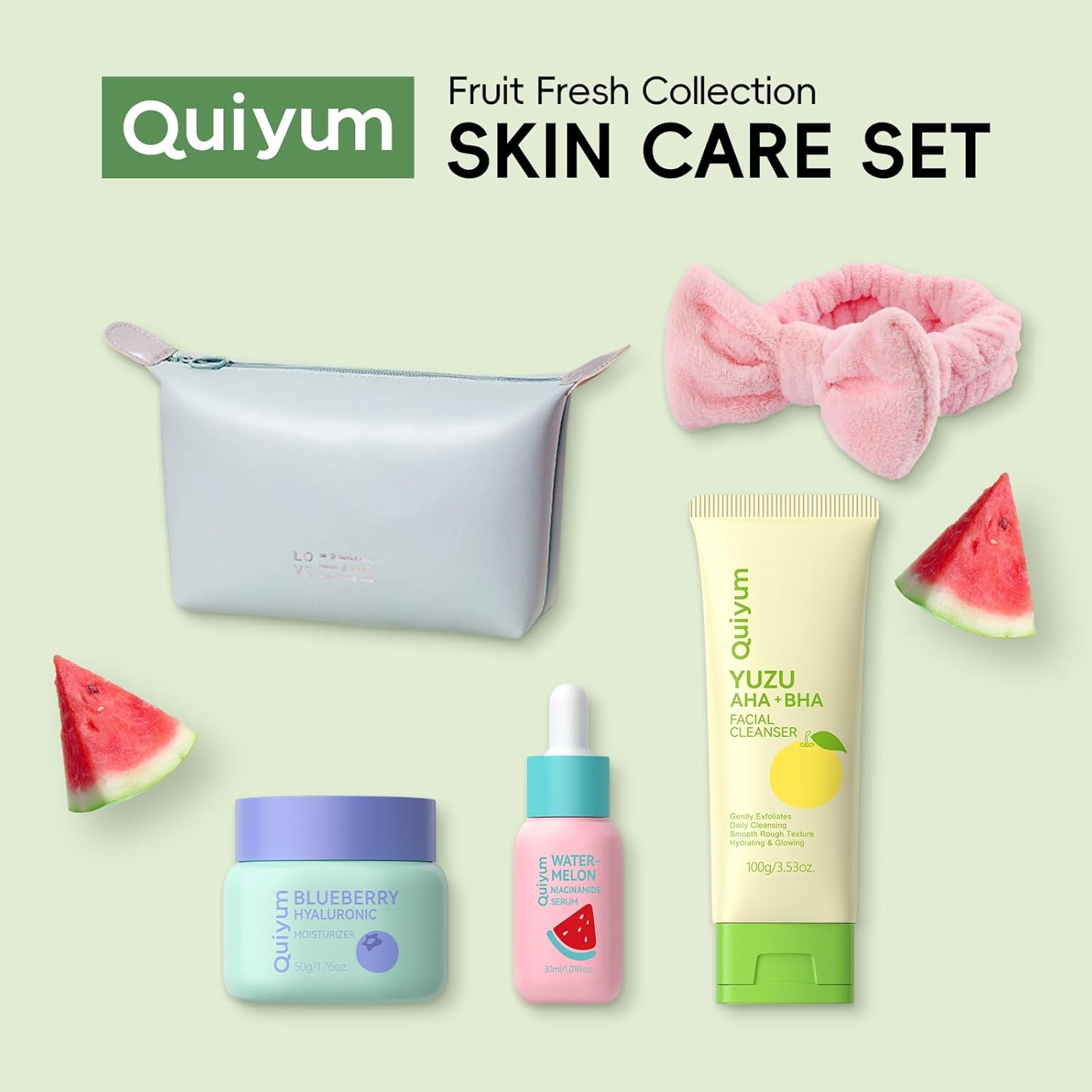 Fruit Skin Care Set of 4 Women Moisturising Care with Cleanser Serum Moisturiser and Headband for Women Men Teenagers