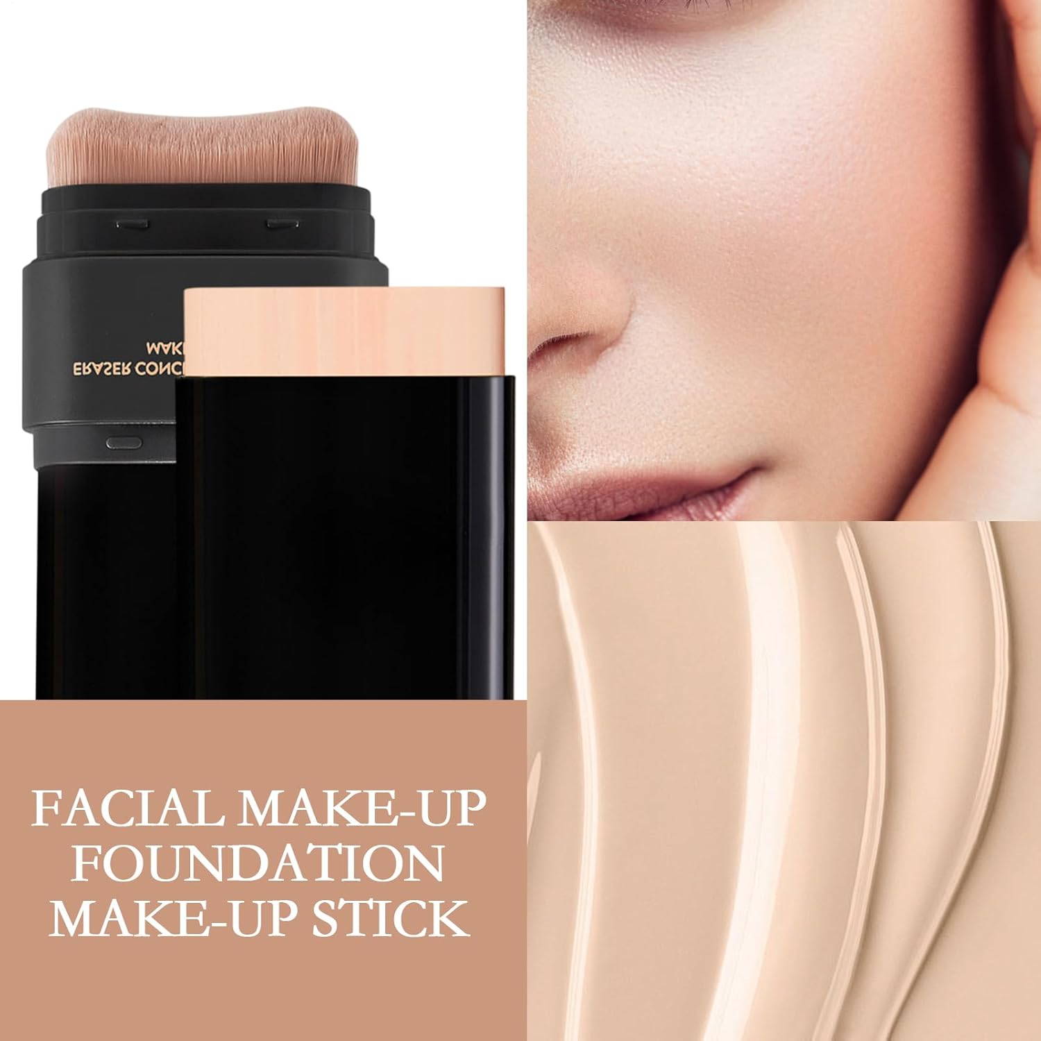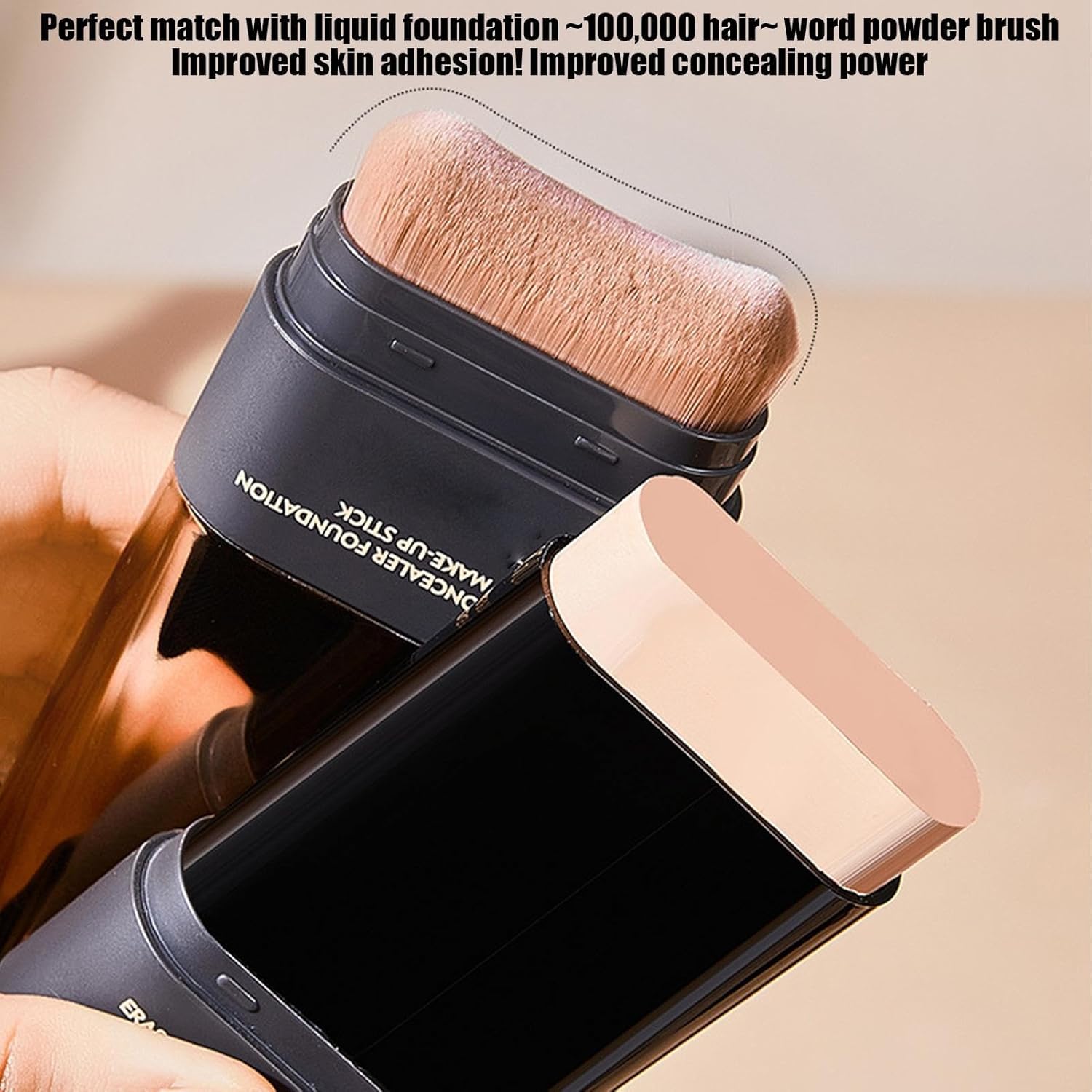 Full Coverage Foundation Stick, Cream Makeup With Brush, Long-lasting Face Foundation, Concealer And Contour Stick Matte Finish To Cover Blemishes For Nose, Forehead, Cheek, Waterproof, 18g