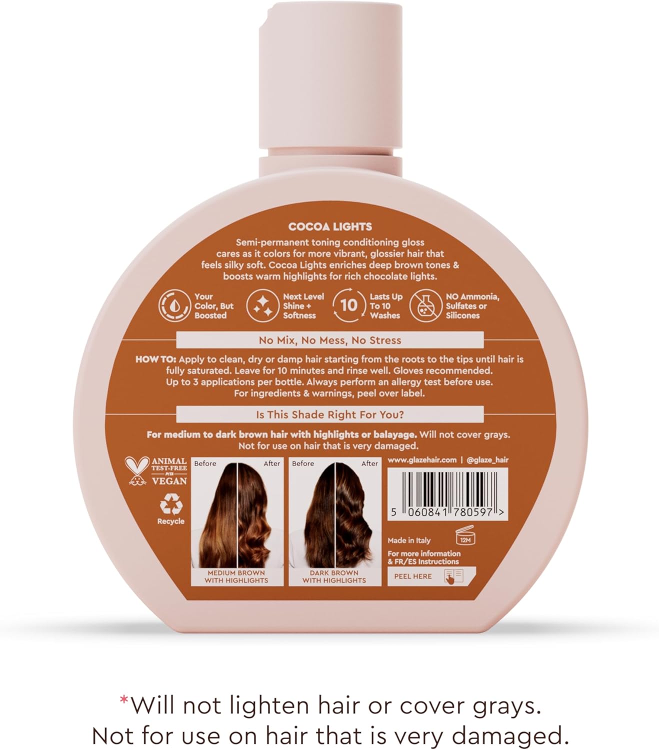 SUPER VERZORGING: KINDColor-technologie verzorgt en revitaliseert je haar al na één gebruik. Verrijkt met vitamine E beschermt Glaze Super Gloss het haar tegen toekomstige schade. Alle Glaze-producten zijn vrij van sulfaten, ammoniak en parabenen, 100% vegan en dierproefvrij.