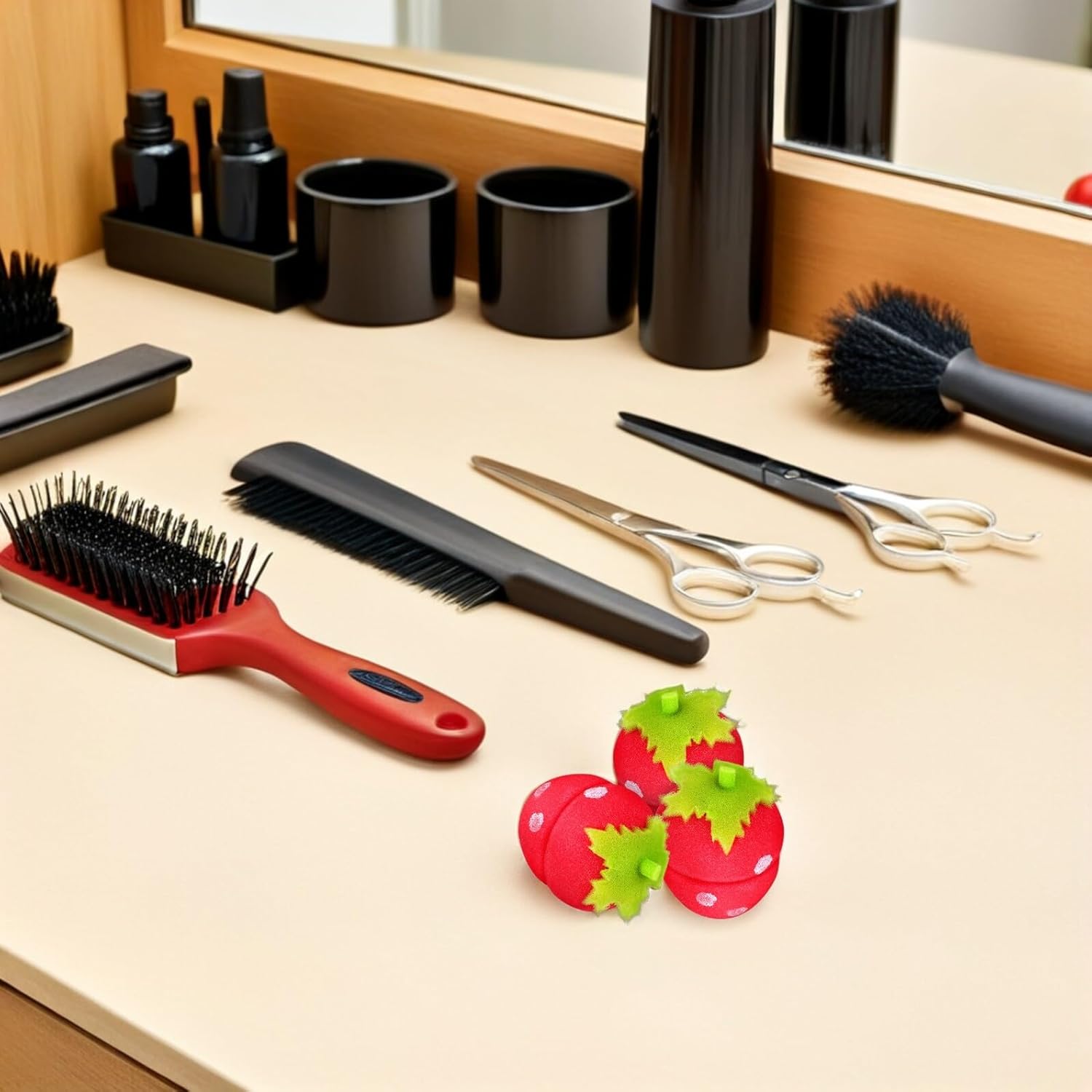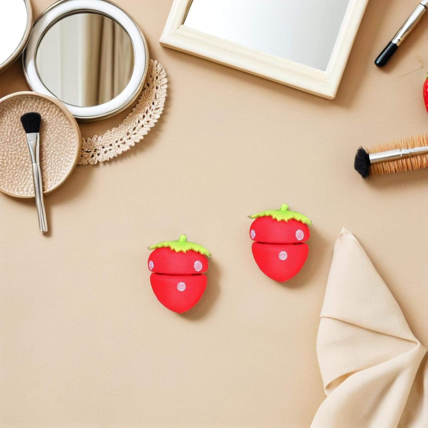 Heat-free curlers. Designed for comfort, the soft strawberry sponge prevents scalp irritation, making them ideal for sensitive users. Strawberry sponge hair curlers. Transform your look with strawberry-shaped hair curlers, created to create beautiful curls without heat. Strawberry night curlers. Achieve salon-quality results at home and enjoy the benefits of soft, protective styling with these versatile sponge rollers. Strawberry styling rollers. These foam rollers for women have a playful yet functional design that ensures smooth, tangle-free curls every time. Flexible curlers for women. Lightweight and easy to carry, they are suitable for different lifestyles including travel and daily use.