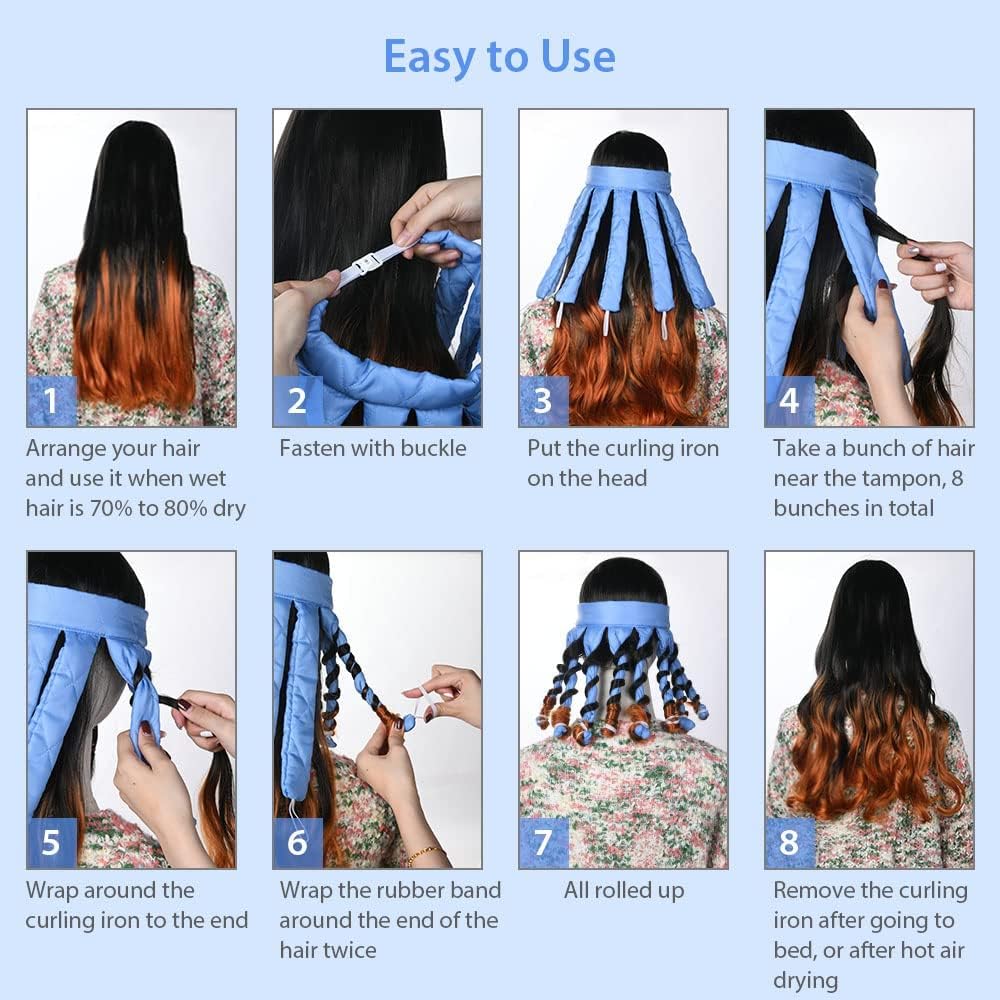 Innovative design: the octopus curling band has 8 curlers, each with an elastic at the end to hold the ends of the hair, simply wear it on the forehead and secure the hair. For beautiful curls wait 4 hours or more. The longer you wait, the better the results. You can even use it while sleeping.