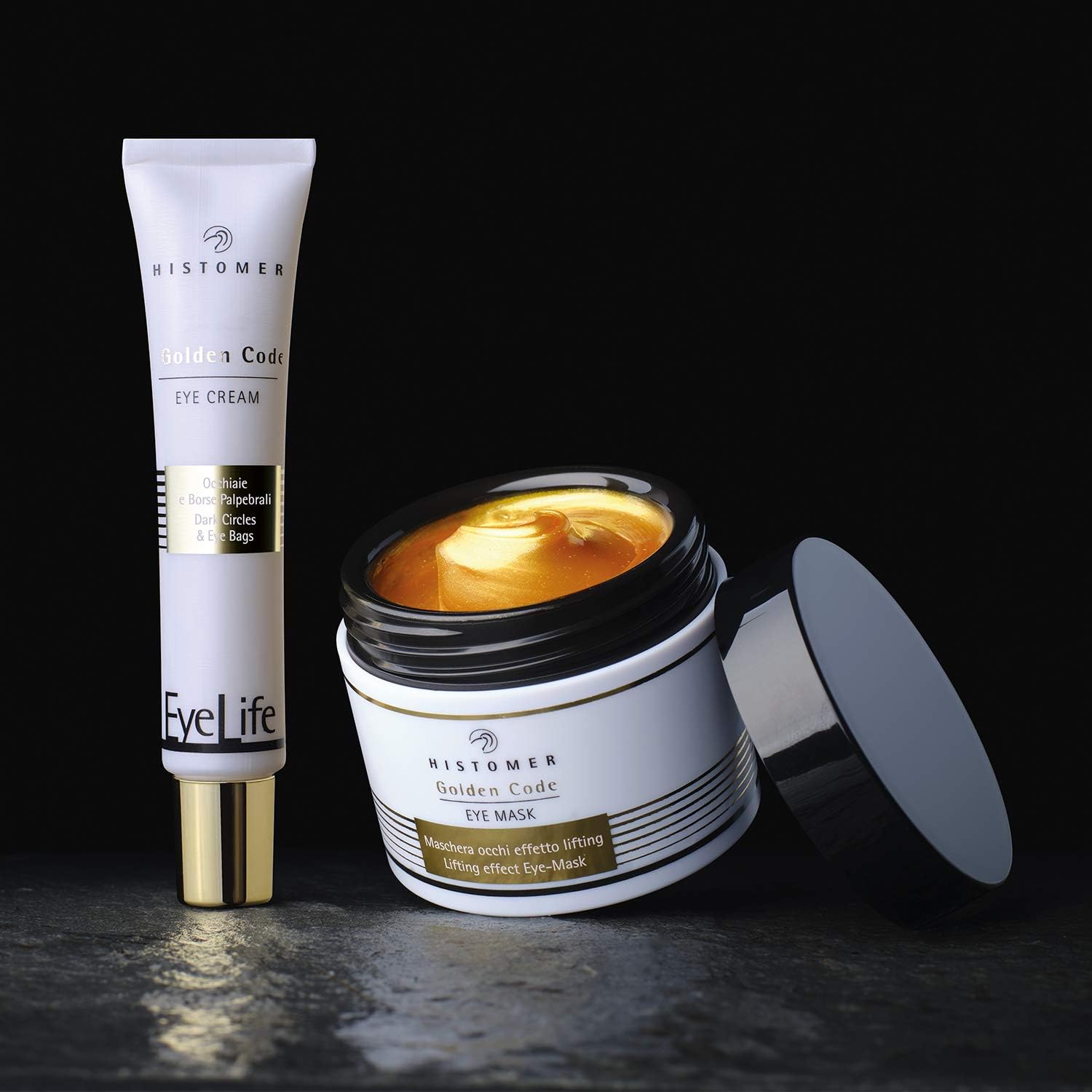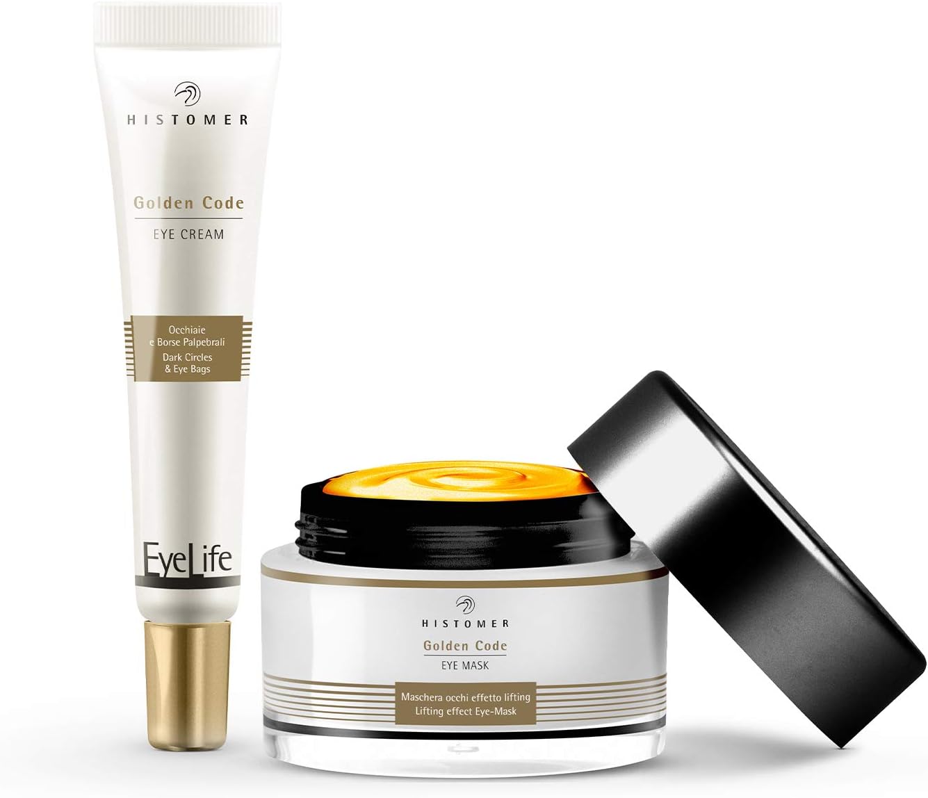 Histomer Eye Life Golden Code Eye Cream is de oogcrème rijk aan biologische flavonoïden, peptidegoud en marrubium-stamcellen die donkere tekenen en zwellingen bestrijden, een krachtig lifting-effect, anti-gravity en verbetert de elasticiteit en sterkte van de ogen om effectief traanzakken, kringen en rimpels te bestrijden.
