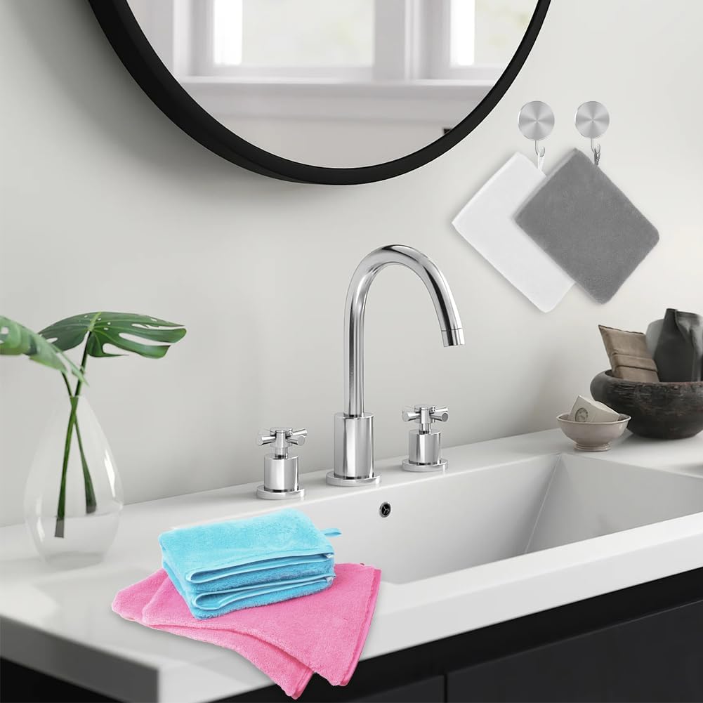 HOTUT Microfiber Washcloths Glove, 8pc Flannel Soft Shower Gloves 15x20cm, Facial Washcloths, Soft Wash Glove, Bath SPA Cloth, Reusable Makeup Remover Gloves (4 colors)