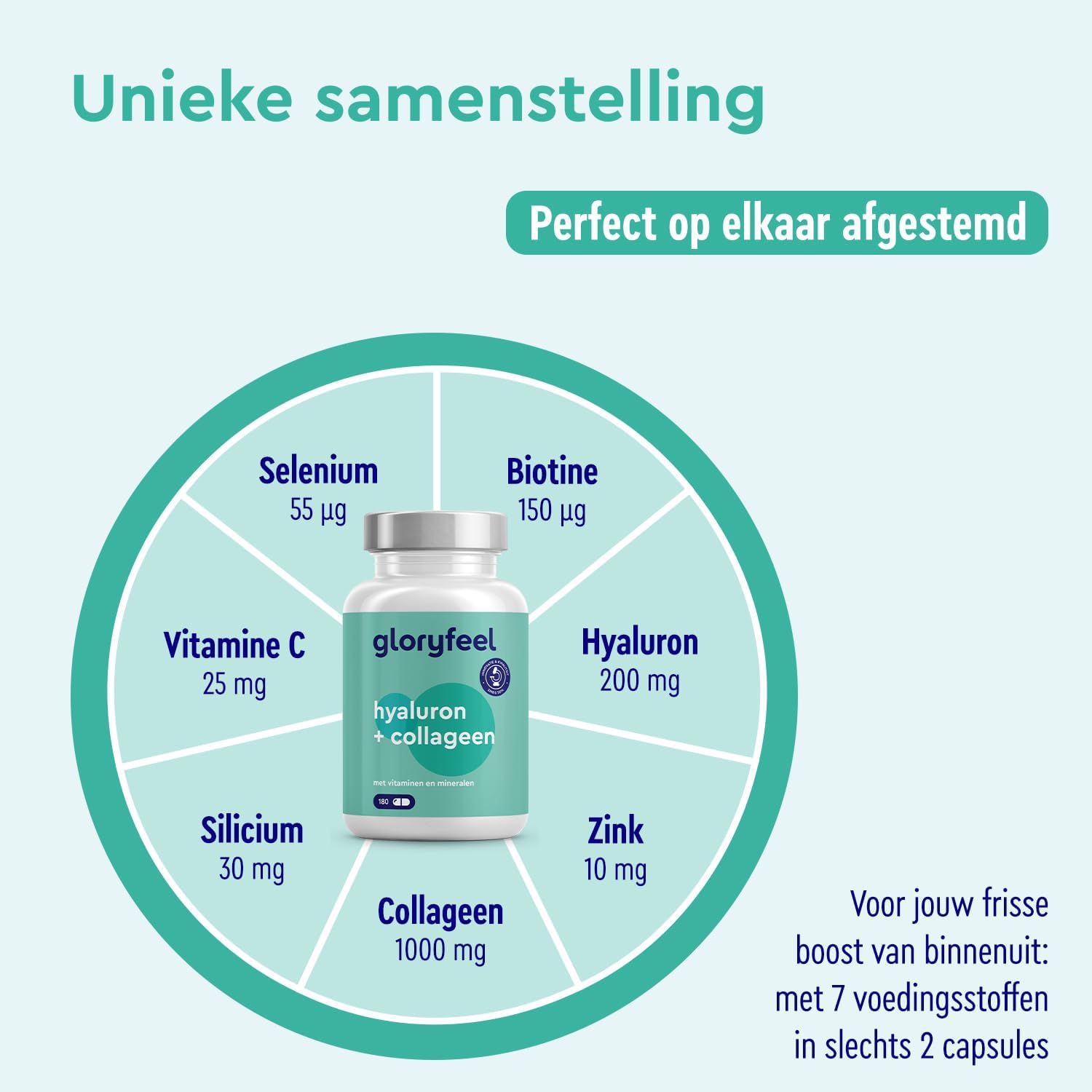 ✅ BEST PRICE QUALITY RATE: A comprehensive skin and hair complex* with hyaluronic acid (500-700 kDa), hydrolyzed collagen, biotin, selenium, zinc, bamboo extract and natural vitamin C from acerola extract. Our hyaluron + collagen complex is highly bioavailable, so that the body can optimally absorb and process all nutrients. With 180 capsules you have enough for 3 months (2 capsules per day).