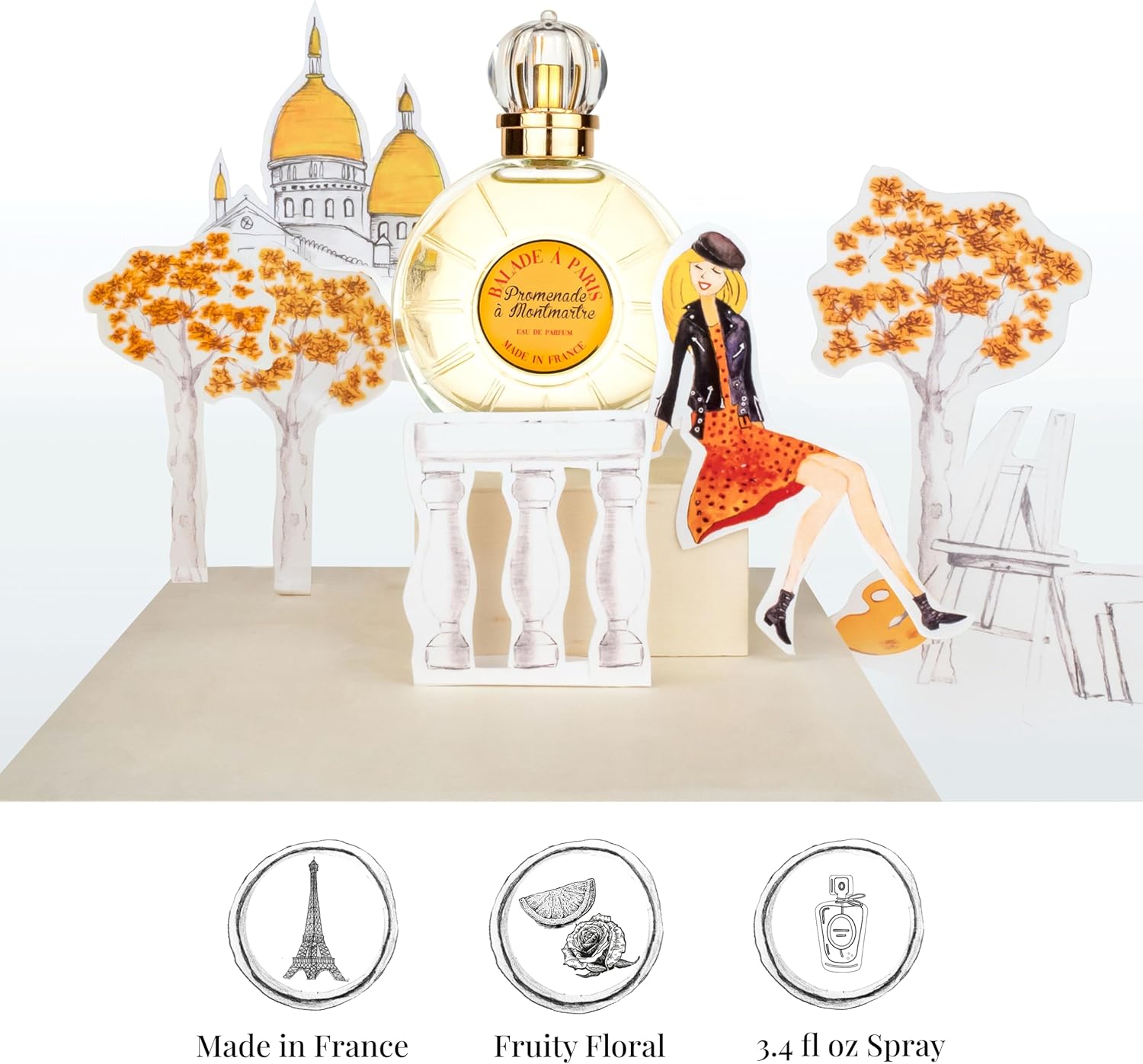 A PERFUME WITH AUTHENTICITY IN ALL PARISS: The fragrance French Way Of Life Promenade in Montmartre spreads notes of orange and bergamot mixed with jasmine with orange blossom and rose, sublimated by patchouli and white musk.