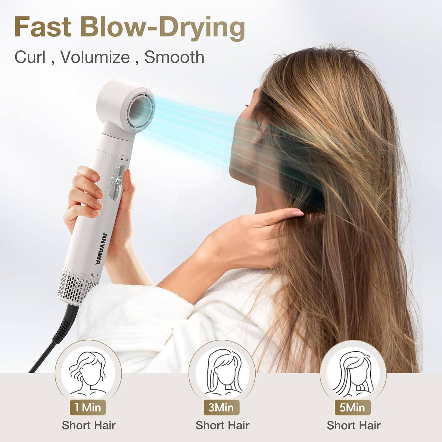 JINYAWA 5-in-1 Hair Dryer Brushes, Hot Air Brush, Thermal Brush, Automatic Air Curler, Curling Volume Brush, Auto-Wrap Airstyler, Hair Styler, Air Styler, Hairstyler Set