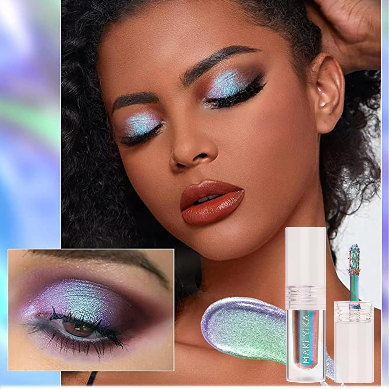 Holographic eyeshadow: Affected by dense sparkles, creates one main color and two additional colors. The color change in different light makes your eyes look more glamorous.