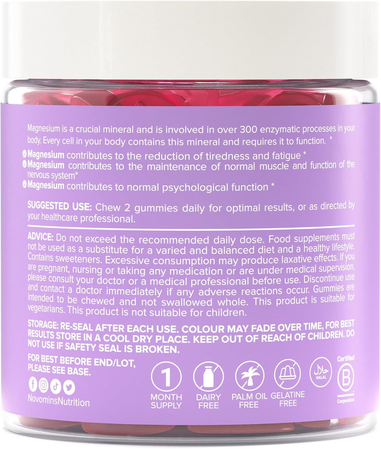 WHY NOVOMINS MAGNESIUM GUMMIES: Novomins is proud to offer you the highest quality supplements that are safe and ethical. Our Magnesium Gummies are produced according to the strictest production regulations (GMP) with the purest ingredients, ethically sourced and easily digested. We also offer a full money-back guarantee if you are not satisfied with our magnesium gummies. Just contact us on Amazon.
