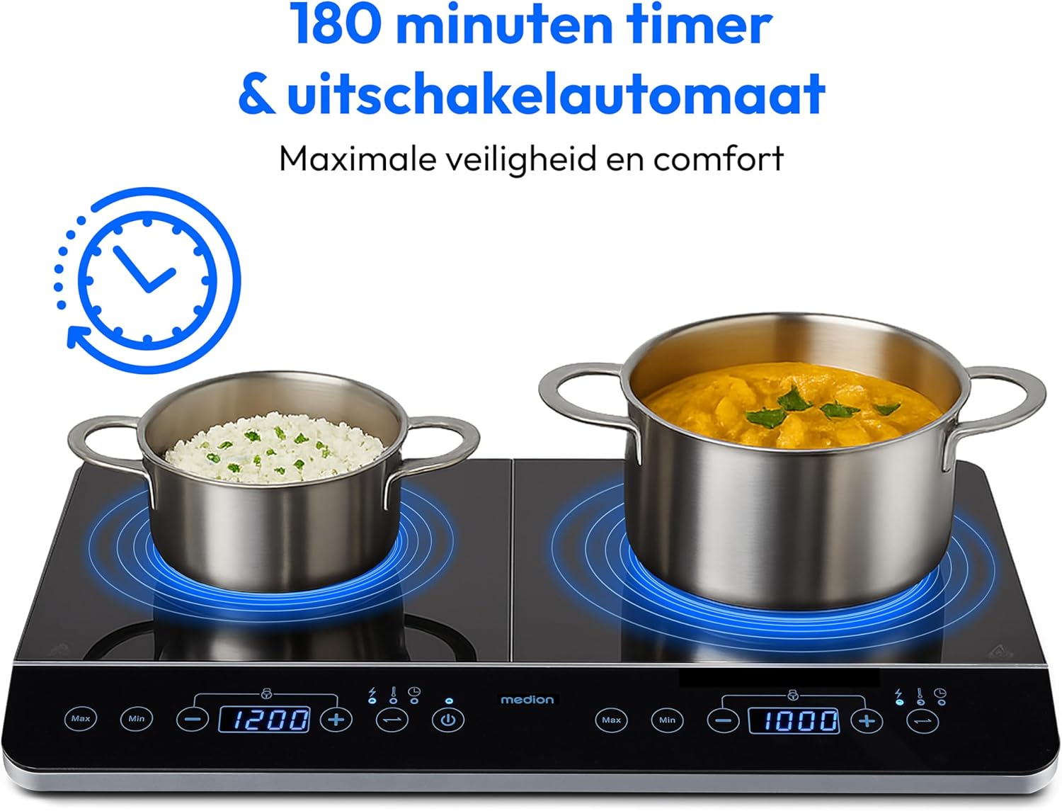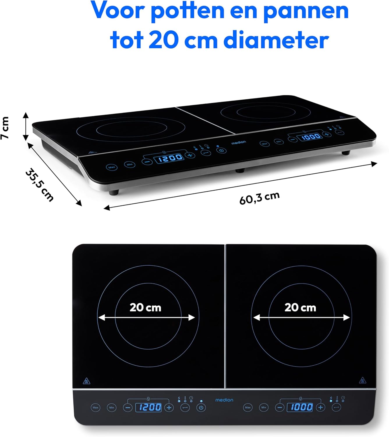 Comfortable cooking experience: Thanks to the high heating capacity of the 3,500 watt double induction hob, your meal is cooked particularly quickly. Thanks to the precise setting, nothing burns so quickly