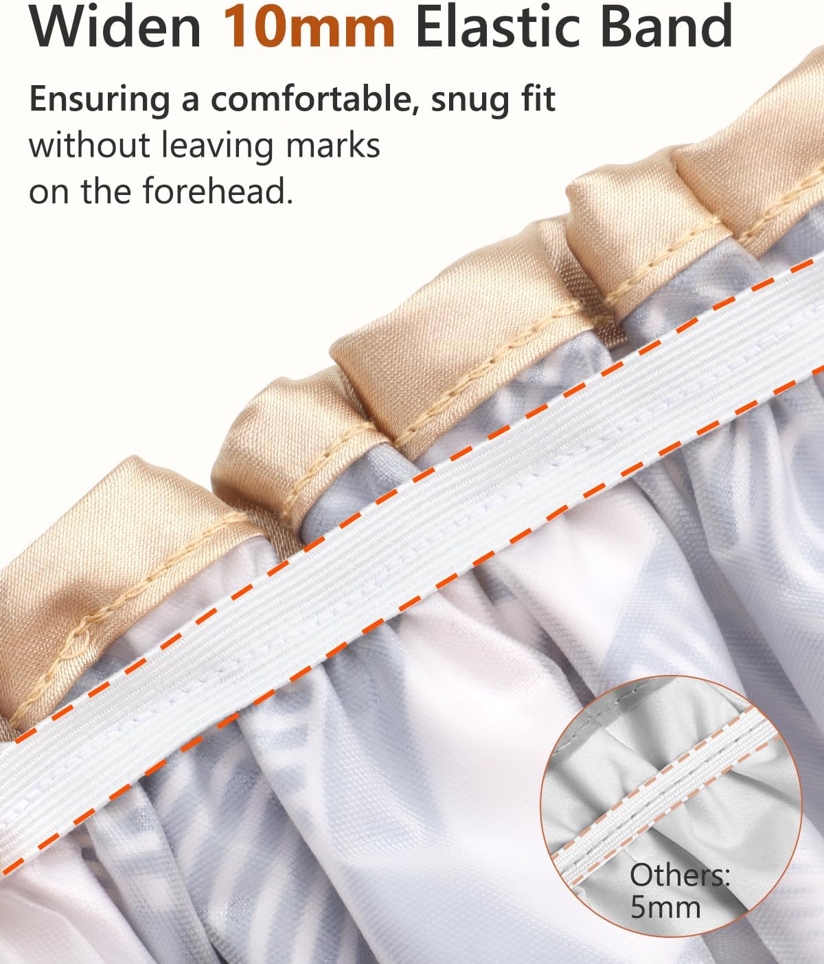Excellent waterproof: This shower cap features a double layer and a wide elastic band, ensuring a snug fit without leaving any marks. The unique 20 mm side bends outward at an angle of 30-45 degrees, effectively isolating water droplets and keeping the forehead and neck dry.