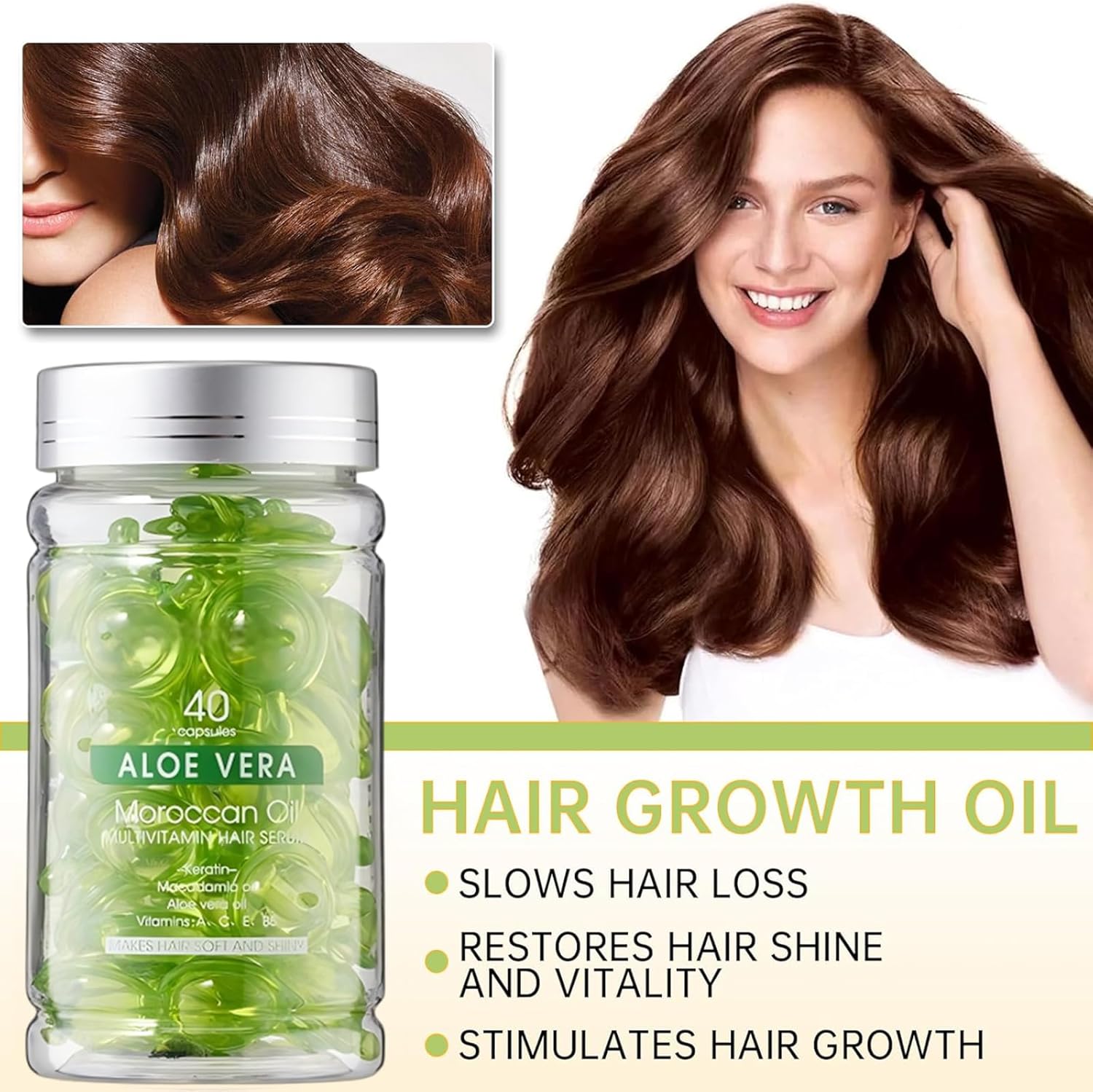 Multivitamin Hair Serum, Hair Serum, Capsules, Smoothing and Nourishing Hair Treatment, with Vitamin Oil for Smooth, Healthy Hair (40 Capsules, Aloe Vera)