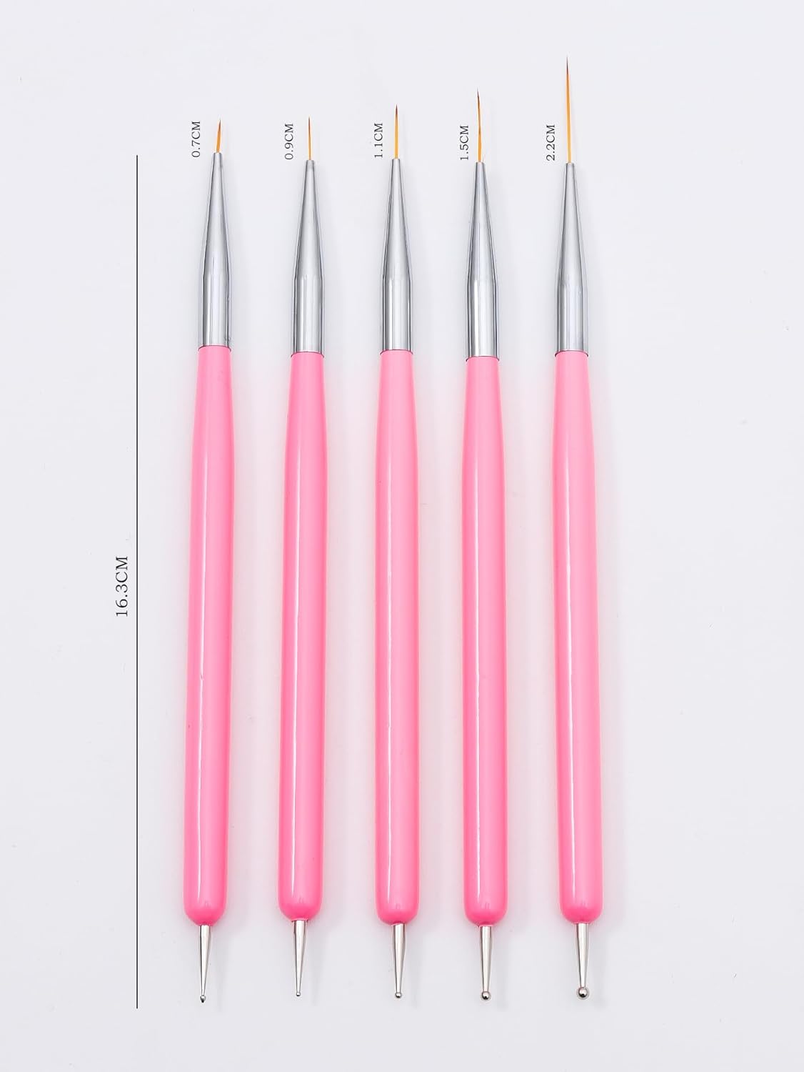 【BUNDLE SET】: This professional nail acrylic brush set includes 5 sizes of liner brushes (7mm, 9mm, 11mm, 15mm, 22mm) and 5 sizes of dotting tools (0.1/0.15/0.2/0.2/0.25/0.3), ideal for drawing different patterns.