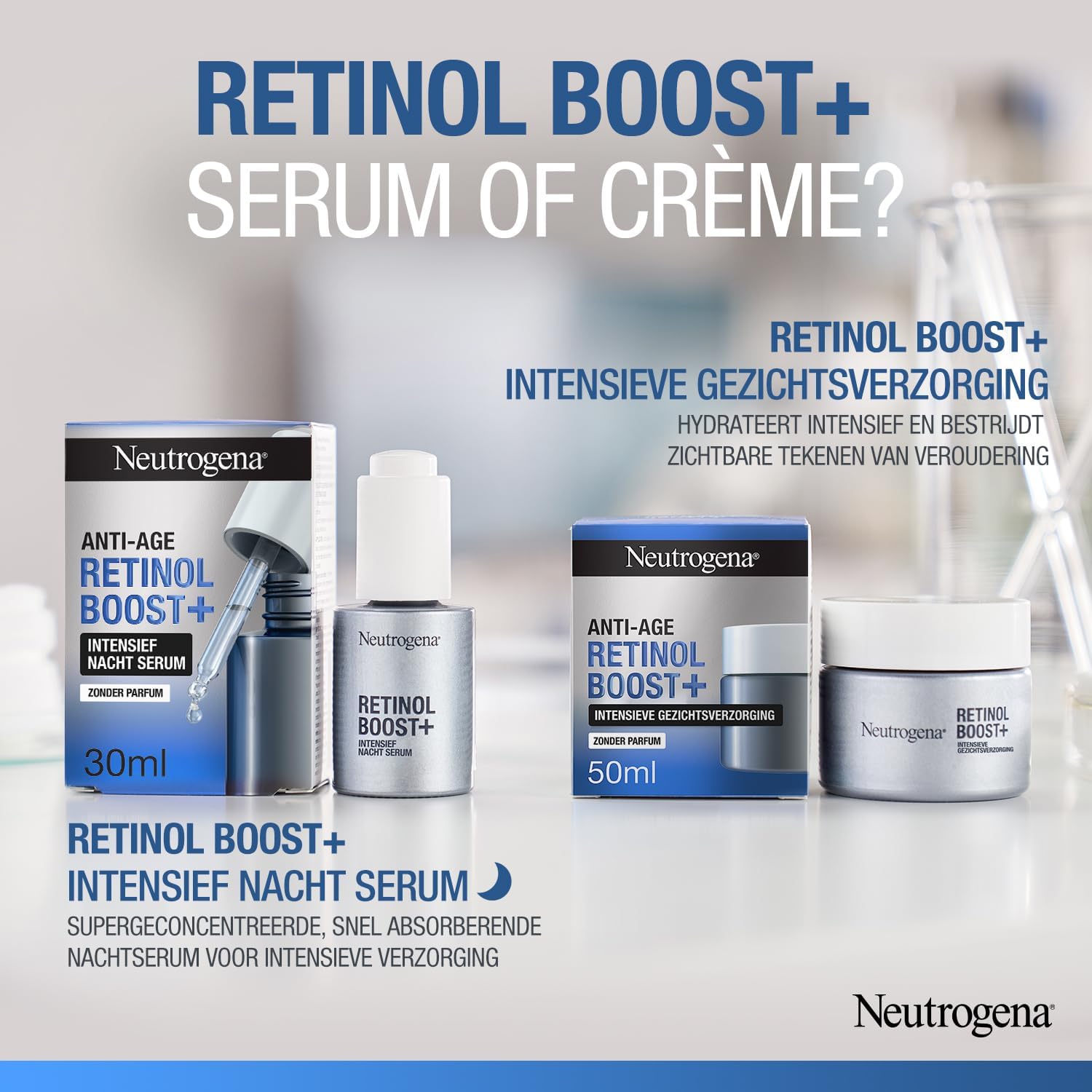 Neutrogena Anti-Ageing Retinol Boost+ stimulates acceleration of collagen production and contributes to cell renewal on the skin surface