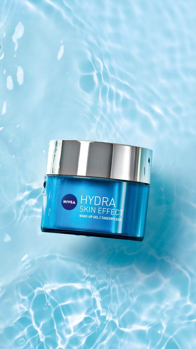 The NIVEA Hydra Skin Effect Wake-up Gel activates the skin’s own hyaluronic production from the inside and thus ensures a fuller and smooth skin. The day cream with pure hyaluronic acid [HA] activates the skin’s own hyaluronic production* from the inside. For this, the valuable ingredient undergoes an extensive preparation process that places it in its pure form.