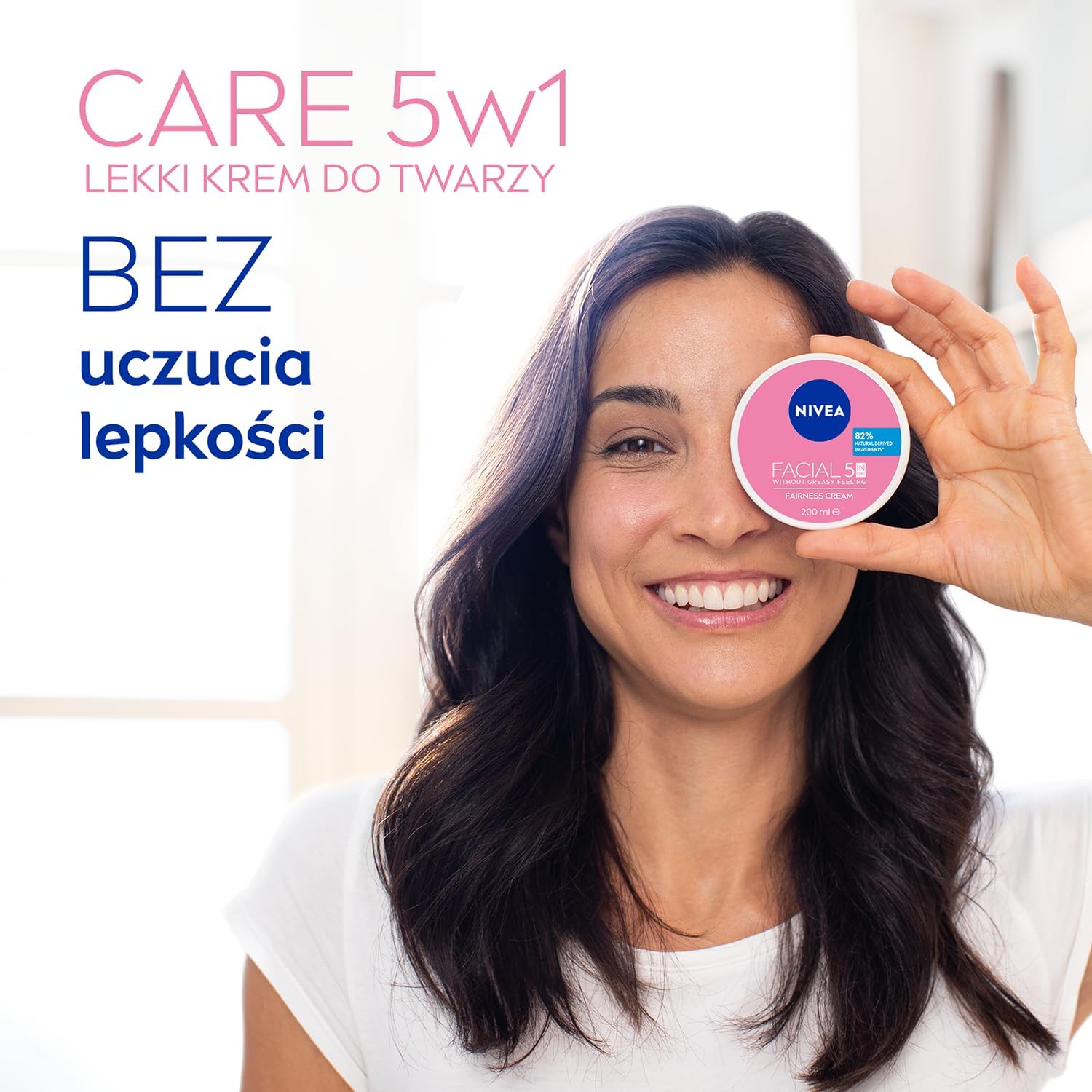 NIVEA Care lichte 3-in-1 gezichtscrème voldoet aan de behoeften van droge en gevoelige huid. Het product absorbeert onmiddellijk, hydrateert en kalmeert irritaties intensief om de huid van je gezicht gehydrateerd en soepel te maken zonder vettig te worden. De milde formule van de aloë vera-crème is ontwikkeld voor de behoeften van de gevoelige en droge huid. Deze crème bevat ook natuurlijke lipiden en verzachtende extracten die rechtstreeks afkomstig zijn van aloë vera-bladeren, bekend om hun kalmerende eigenschappen. Hydraulische wassen zorgen voor intensieve hydratatie, zodat de gezichtshuid glans en gezonde uitstraling behoudt. De crème versterkt de natuurlijke beschermende barrière van de huid en verlicht irritatie.