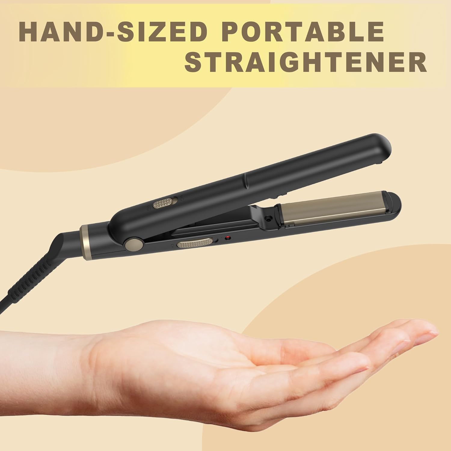 OKWRAP Mini Straightener for Short Hair, 2 in 1, Portable for Travel, Ionic Hair Straightener, 3D Ceramic Plates, Universal Voltage 100-240 V, Auto Shut Off Travel Size