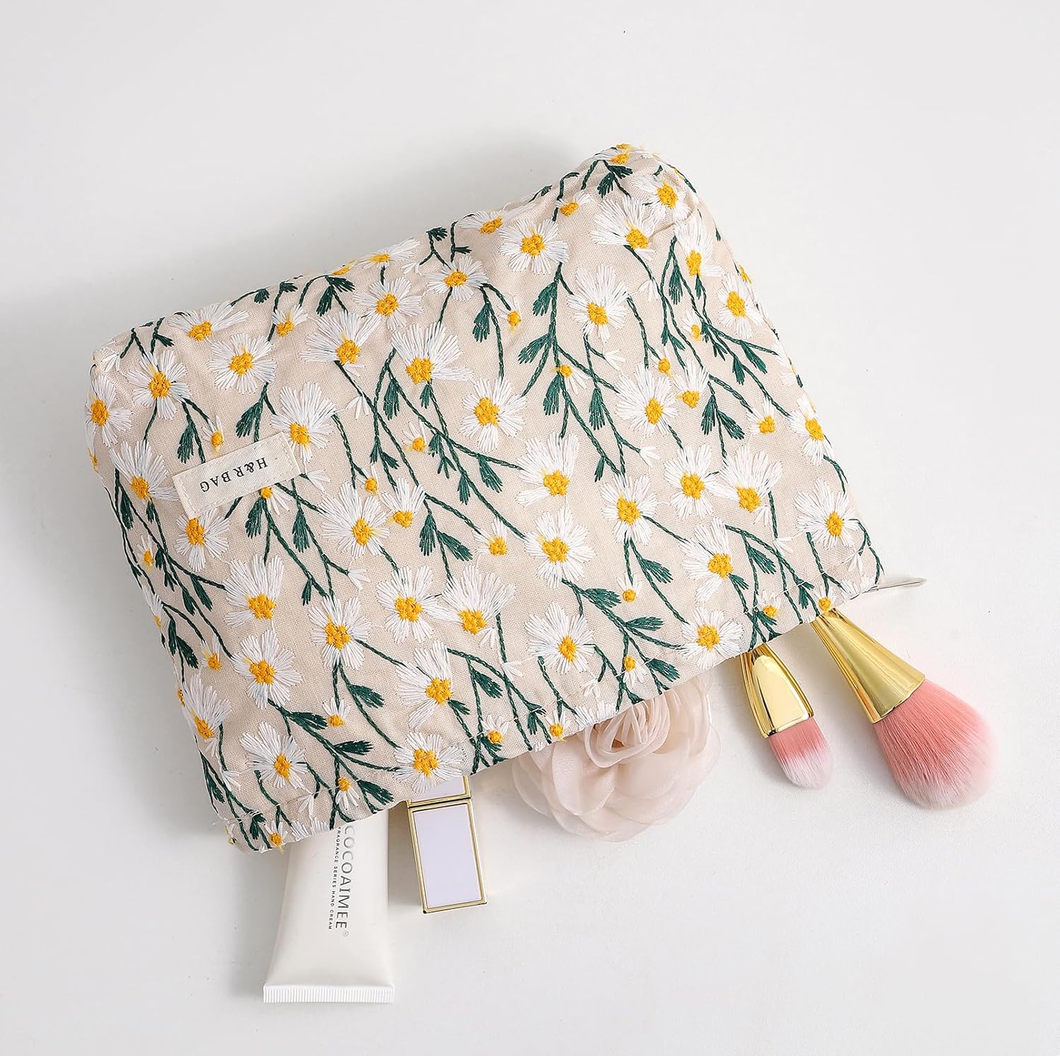 Bloemenzakpatroon: de grote toilettas voor dames voor portemonnee heeft een mooie bloemenprint en voegt een vleugje stijl toe aan je make-up routine.