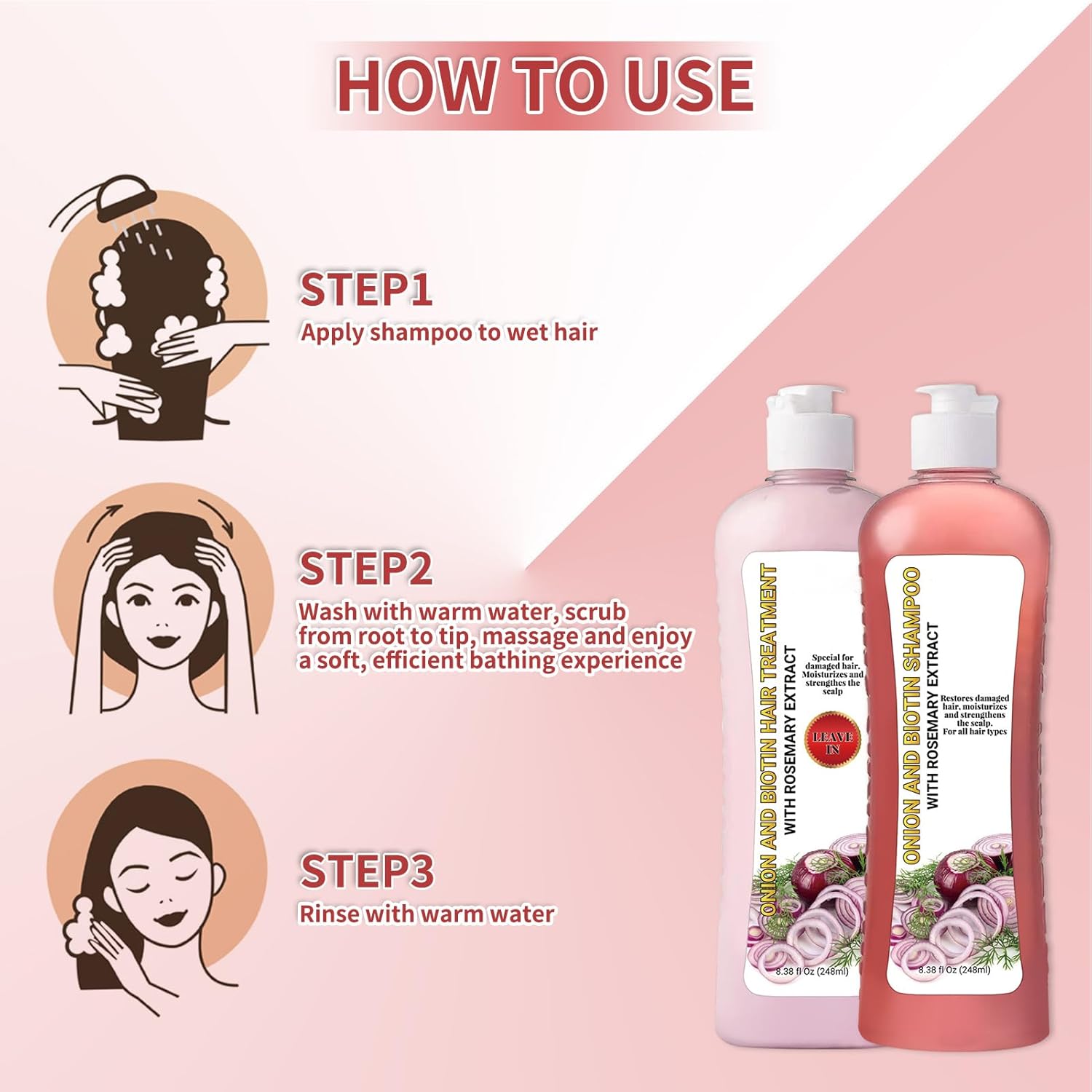 Powerful Onion Extract: Enriched with natural onion extract known to stimulate scalp circulation and promote hair growth: helps reduce hair fall and encourages the growth of thicker, stronger strands with consistent use.