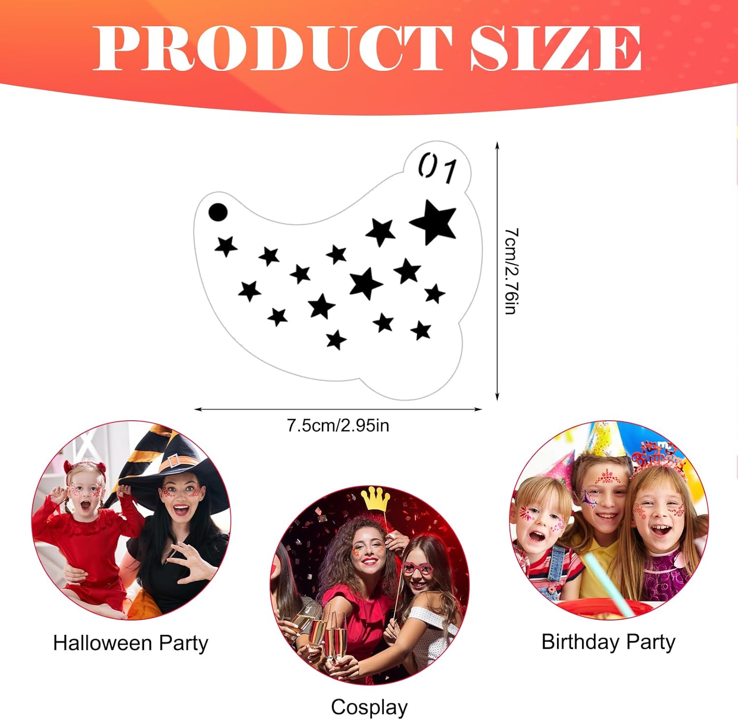 Size: These face stencils measure about 7×7.5cm/2.76×2.96in. Suitable for children and adults in general, you can choose according to your actual needs.