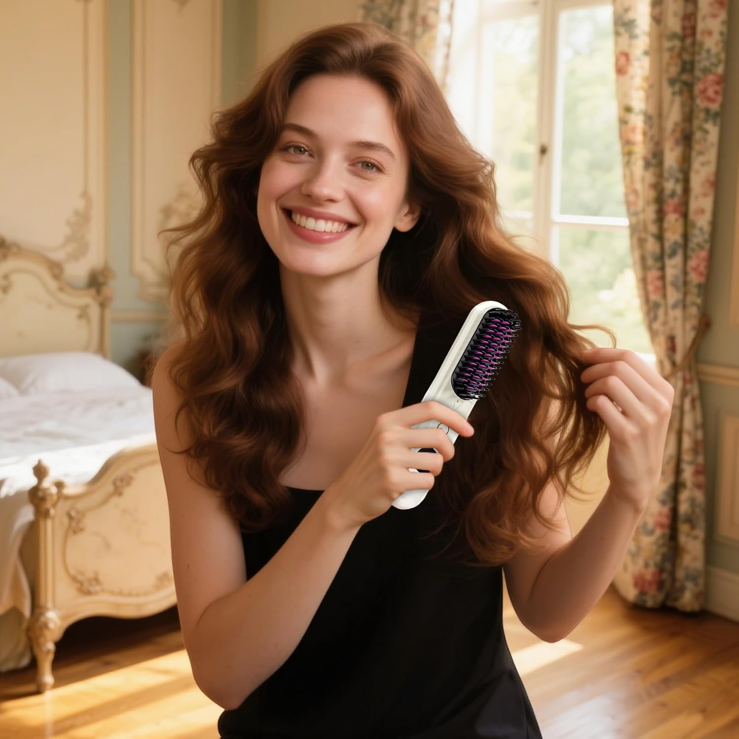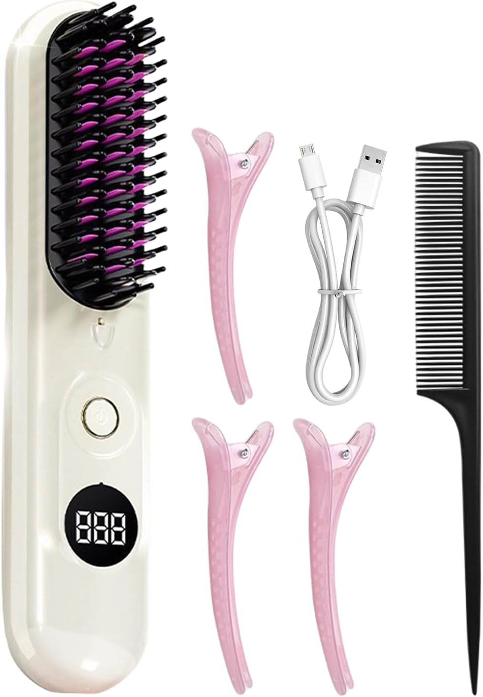 Portable Hair Straightener, Moisturizing Comb, USB Rechargeable Styling Tool, 3 Temperature Curling Brush for Dry, Wet, Short, Thin, Thick Hair, Travel, Salon, Home, Quick Heat